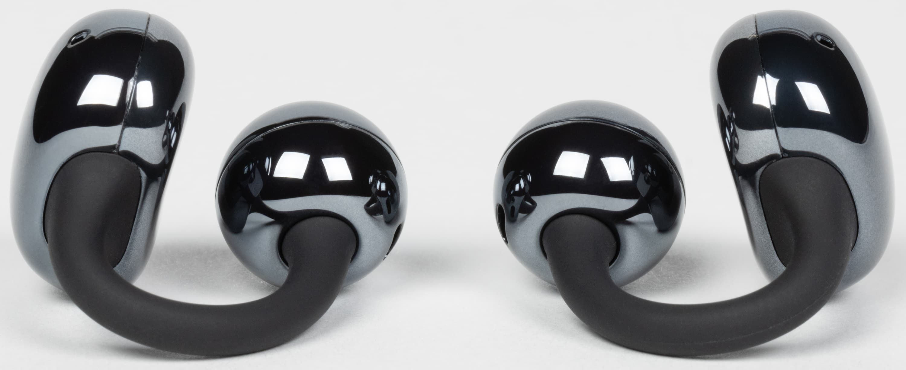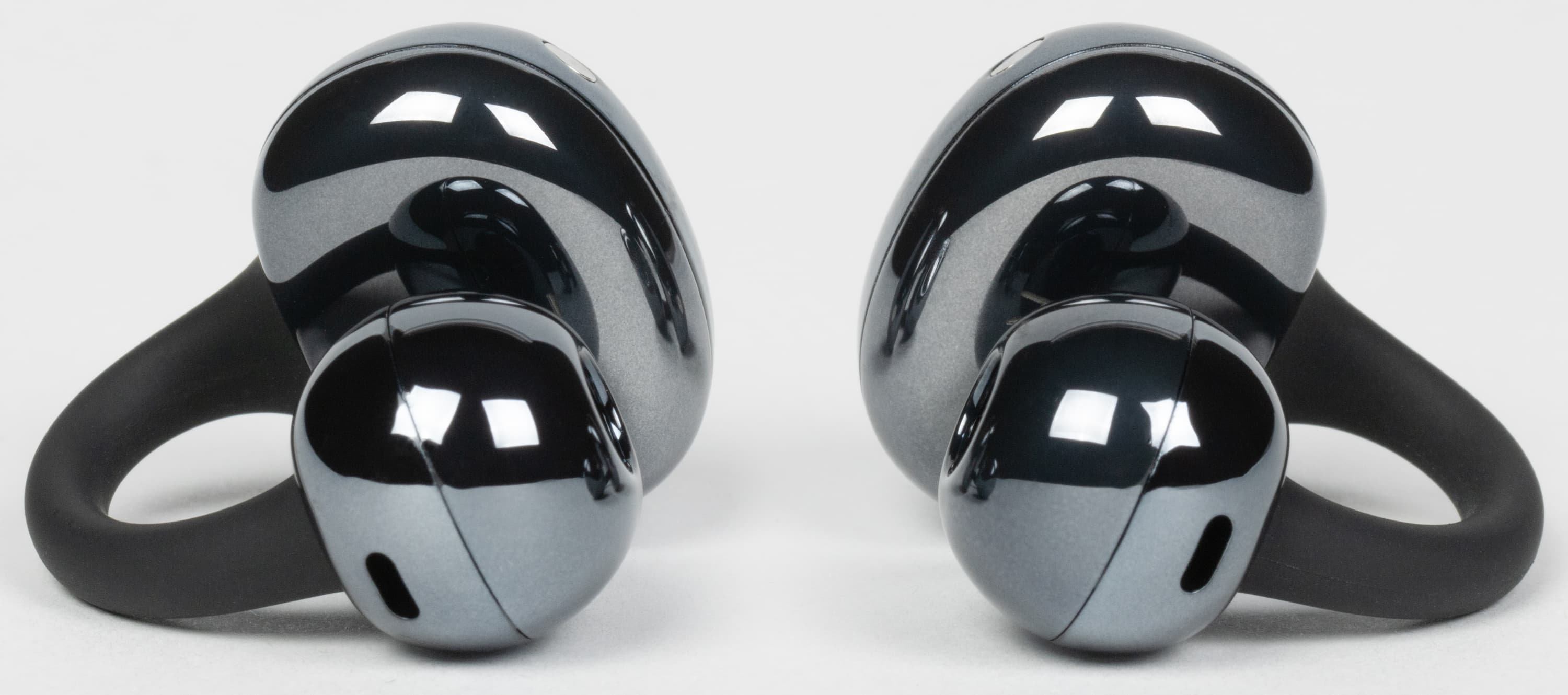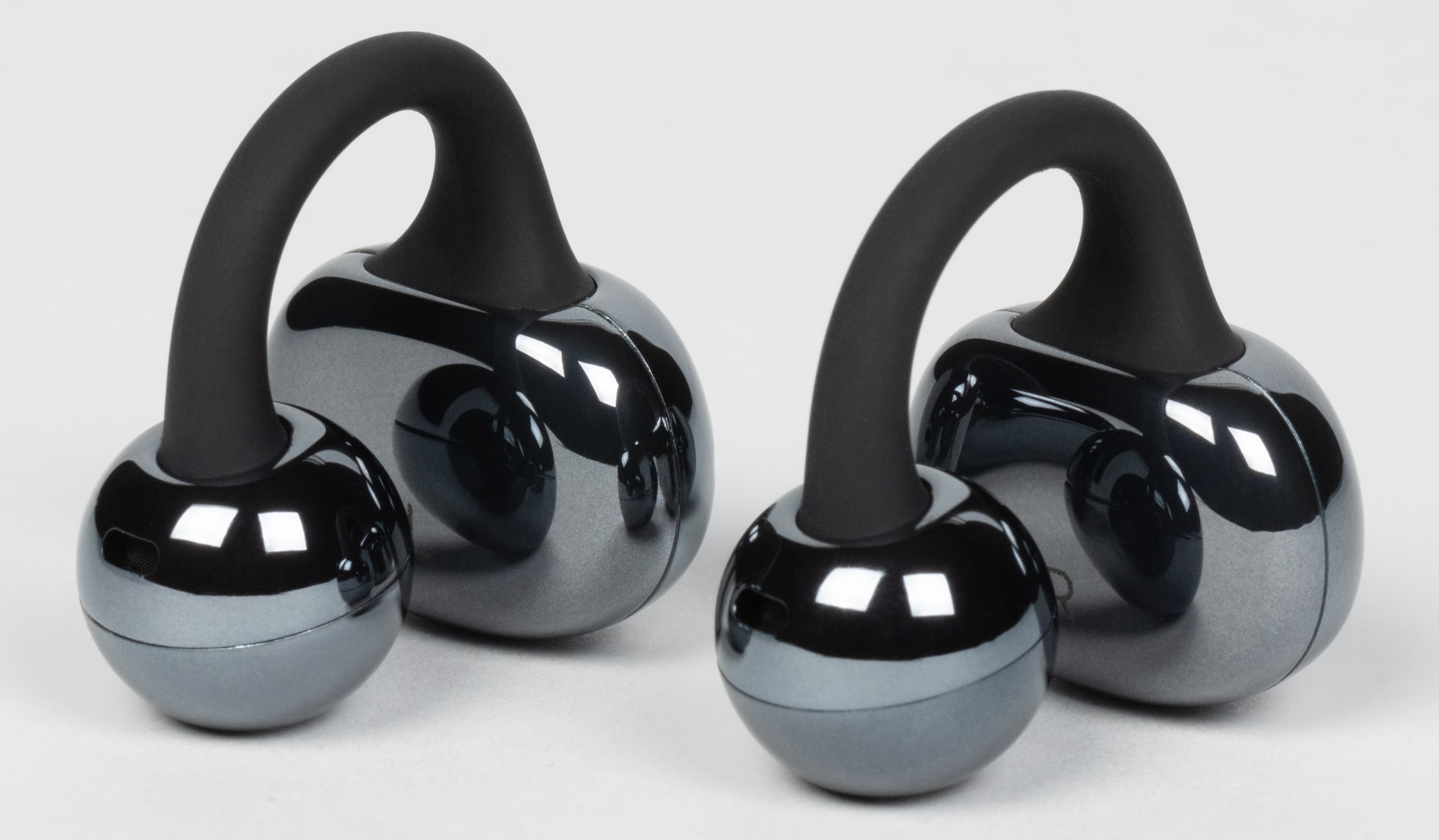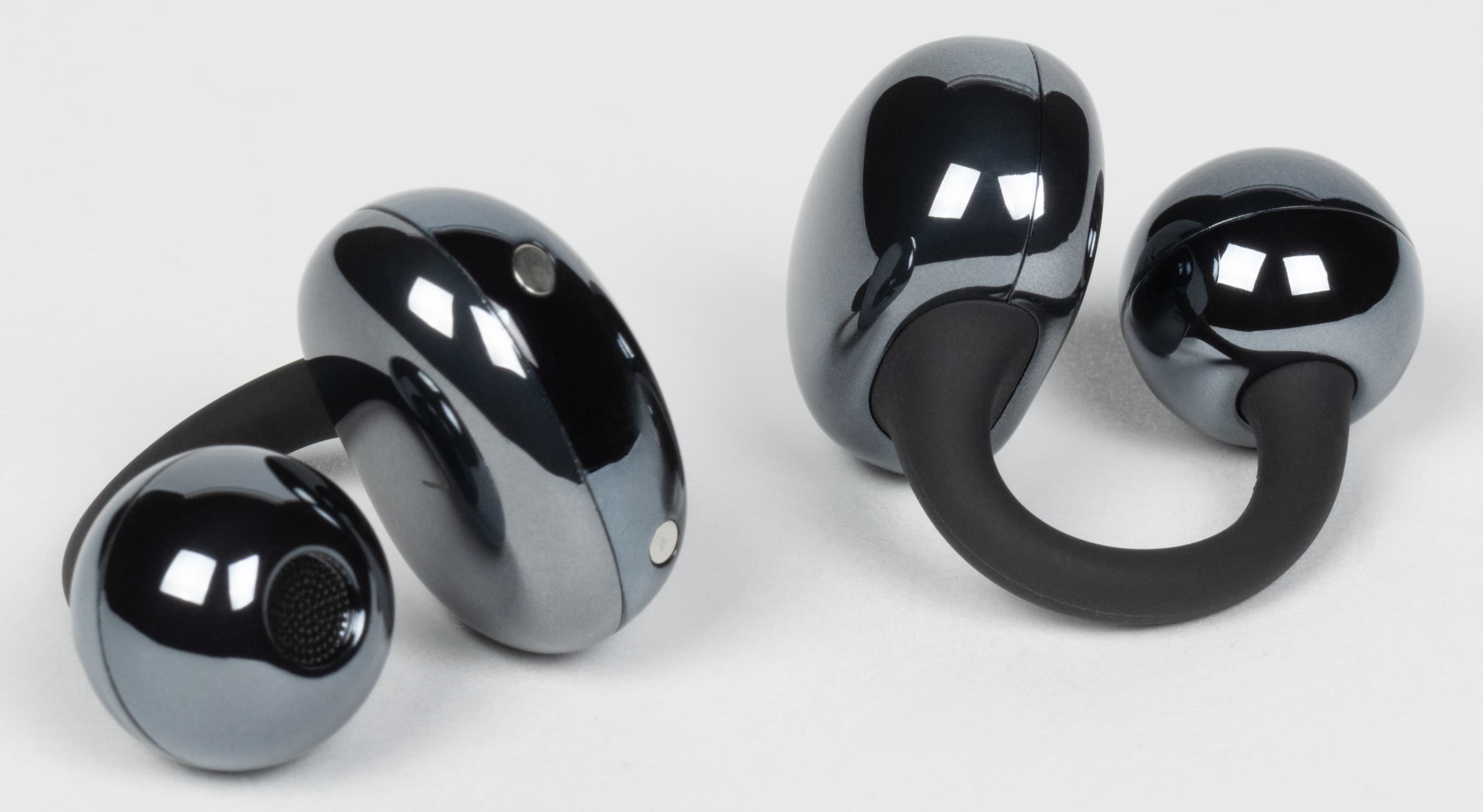 В самом начале прошлого года мы познакомились с довольно оригинальным форматом TWS-гарнитур — производитель называет такие наушники «каффы», но можно оперировать и более привычными и понятными терминами — «клипсы» или даже «сережки». Вкратце напомним, чем интересен такой форм-фактор. На ухе наушники удерживаются за счет двух округлых элементов и соединяющей их дуги, при этом звуковод не проникает в слуховой канал. Соответственно, аудитория таких устройств сразу пополняется за счет пользователей, которые испытывают дискомфорт при ношении внутриканальных решений.