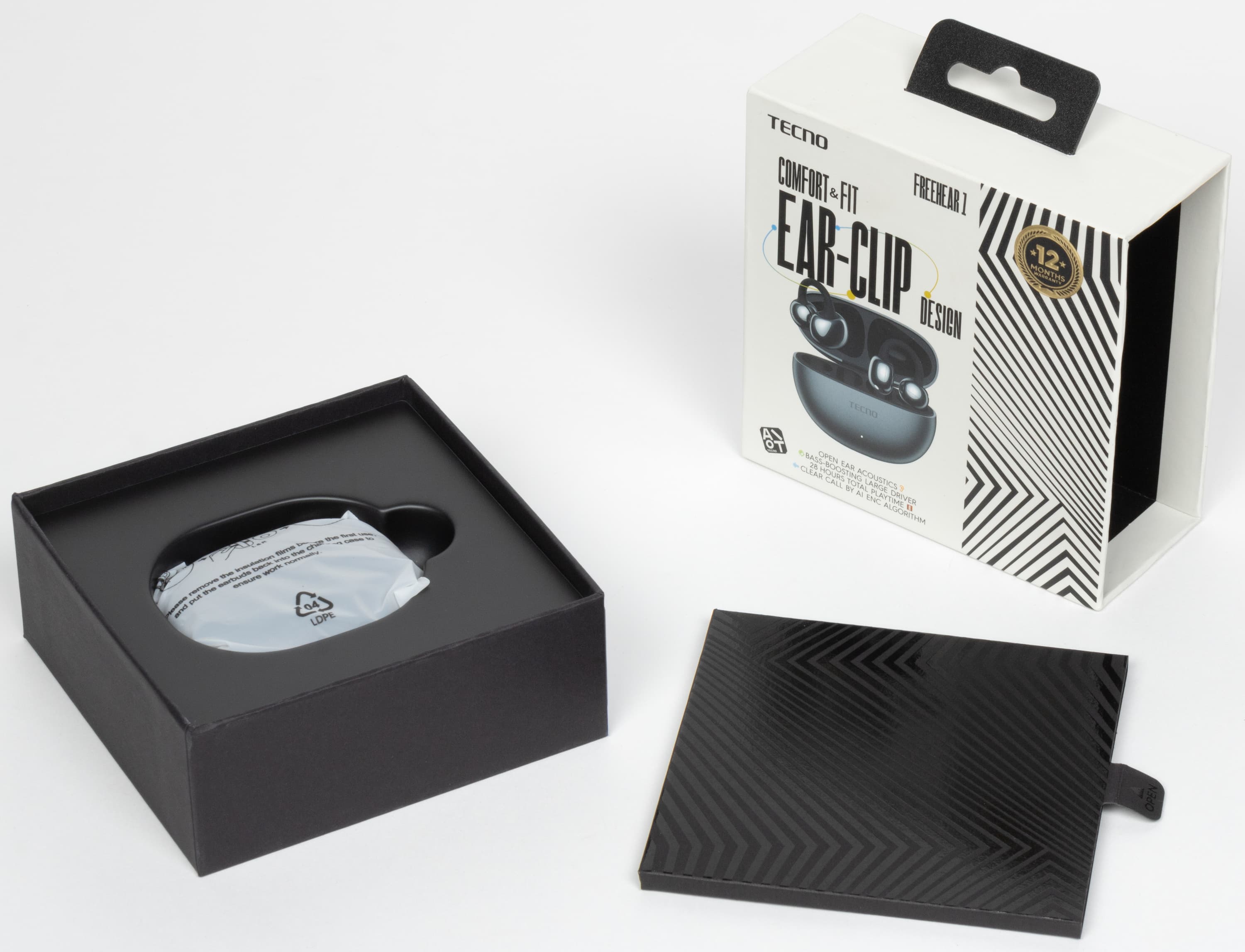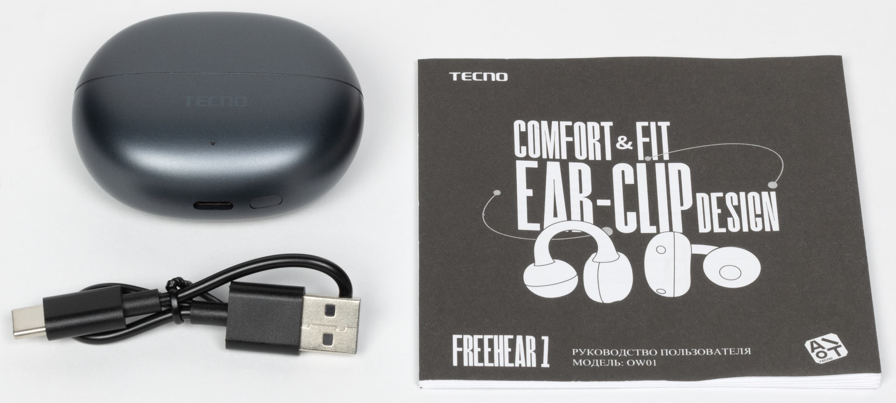 Появление более доступных аналогов было лишь вопросом времени, но всё же заняло больше года. Недавно мы протестировали наушники Honor Choice Earbuds Clip, которые внешне максимально похожи на уже знакомую нам модель FreeClip, но стоят в два раза дешевле. Естественно, снижение цены потребовало определенных компромиссов, но в целом они оказались вполне разумными — гарнитура получилась очень приятной в использовании. Однако неизбежно напрашивался вопрос: а можно ли еще дешевле? Оказалось, что да. Бренд Tecno предложил свое видение наушников-каффов под названием FreeHear 1, и их уже вполне можно отнести к бюджетному сегменту. Конечно, ради снижения стоимости вновь пришлось пойти на ряд уступок — оставалось выяснить, насколько они повлияли на комфорт эксплуатации устройства.