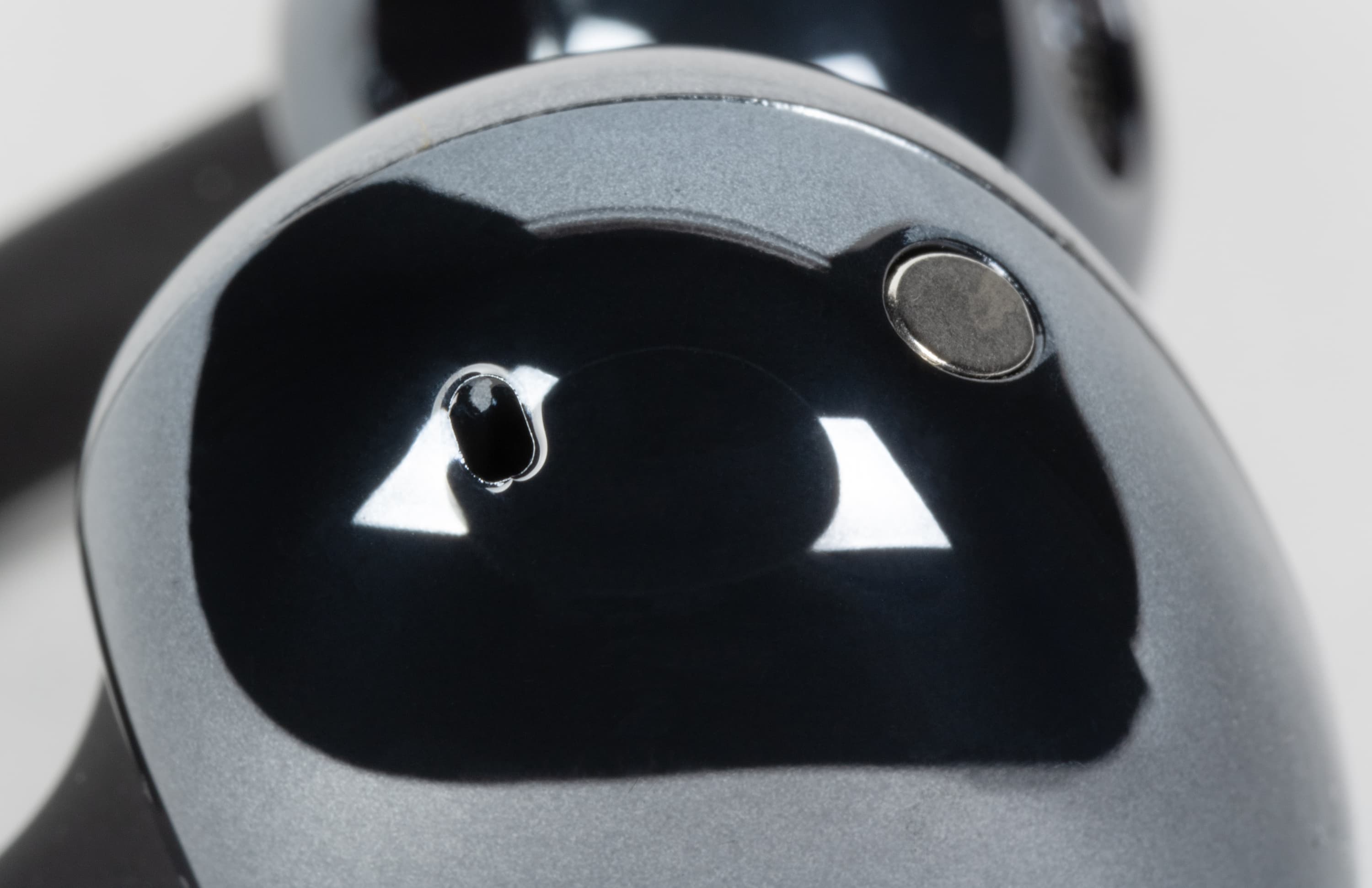 Глянцевая поверхность фасолевидной части довольно чувствительна к загрязнениям — отпечатки и пыль появляются быстро. Однако благодаря тому, что при ношении этот элемент располагается за ухом, при повседневной эксплуатации следы почти незаметны.