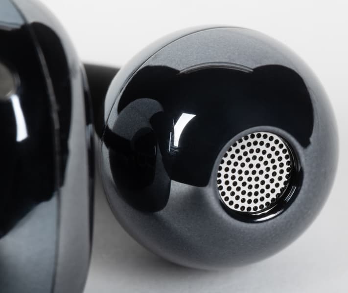 На внешней стороне округлых элементов расположены отверстия микрофонов — они отвечают как за передачу голоса, так и за работу системы шумоподавления во время звонков. Отдельно стоит отметить, что несмотря на наличие нескольких довольно крупных отверстий в корпусе, наушники имеют заявленную степень влагозащиты IPX4.