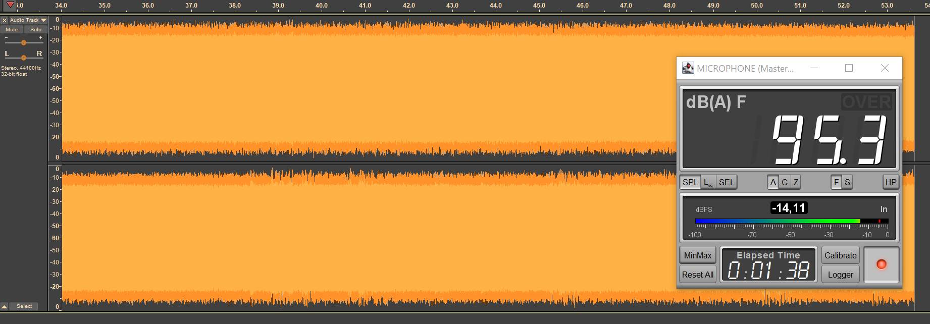 Вкратце напомним нашу методику тестирования времени работы беспроводных наушников. Безопасным уровнем звукового давления при прослушивании музыки считается 75 дБ, но на практике большинство слушателей предпочитает уровень 90-100 дБ. Мы транслируем в наушники белый шум, фиксируя уровень SPL в районе 95 дБ, сразу после старта воспроизведения запускаем запись сигнала с измерительного стенда — по длине получившегося трека легко понять, сколько проработал каждый из наушников.