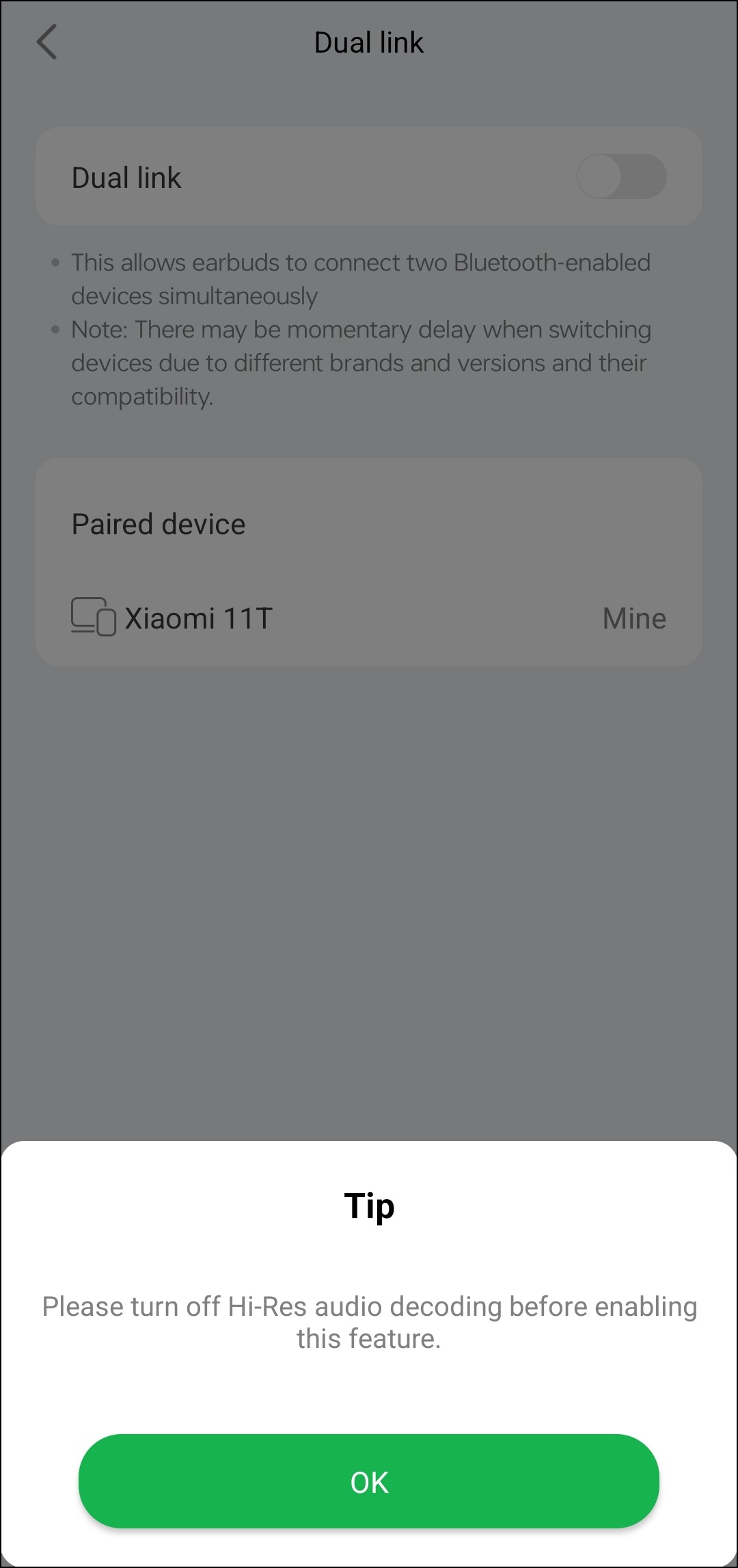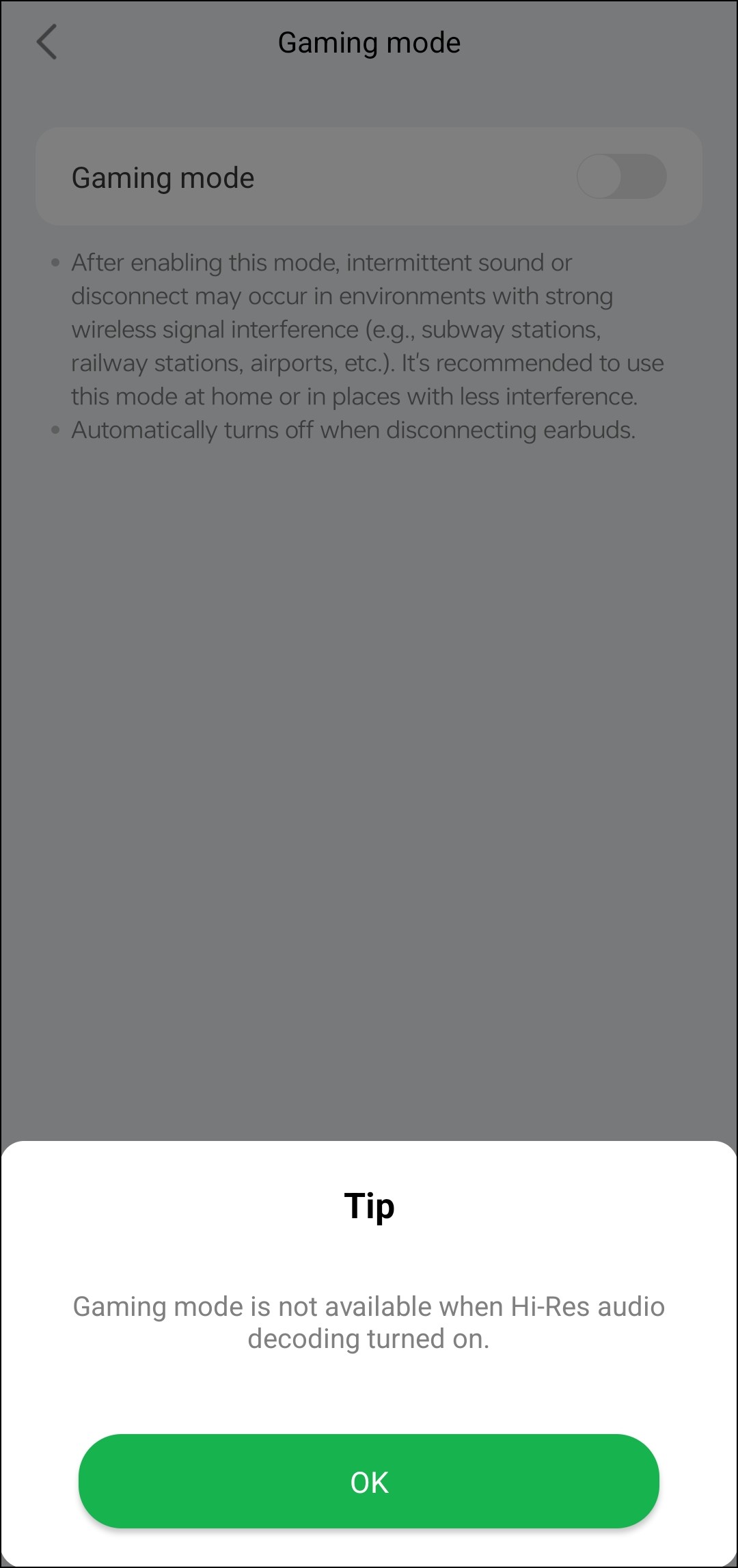 При активации опции поиска гарнитура начинает издавать громкий высокочастотный звук, который неплохо слышен в тихой обстановке — найти упавшие куда-нибудь за диван наушники это действительно может помочь. Перед воспроизведением сигнала приложение предупреждает, что он очень громкий, а потому запускать поиск, не сняв наушники — плохая идея. Функция «Hi-Res Audio» активируется на отдельной странице, там же можно посмотреть, какой кодек используется в данный момент.