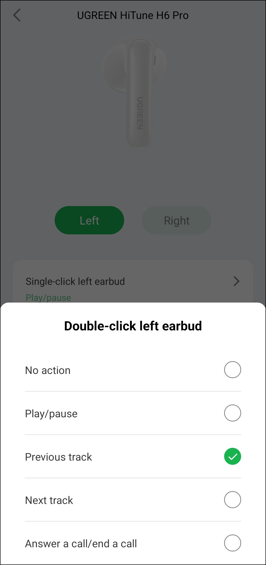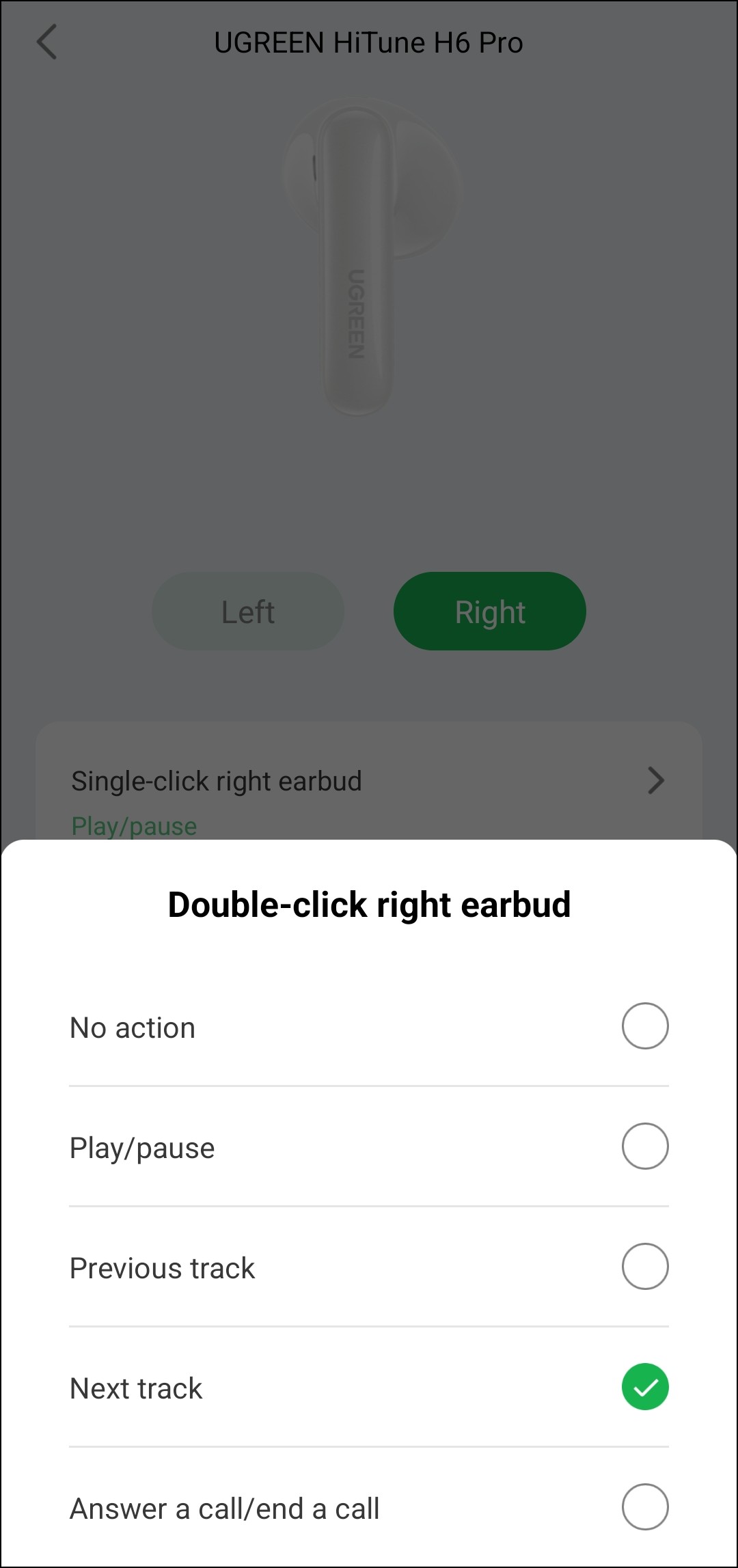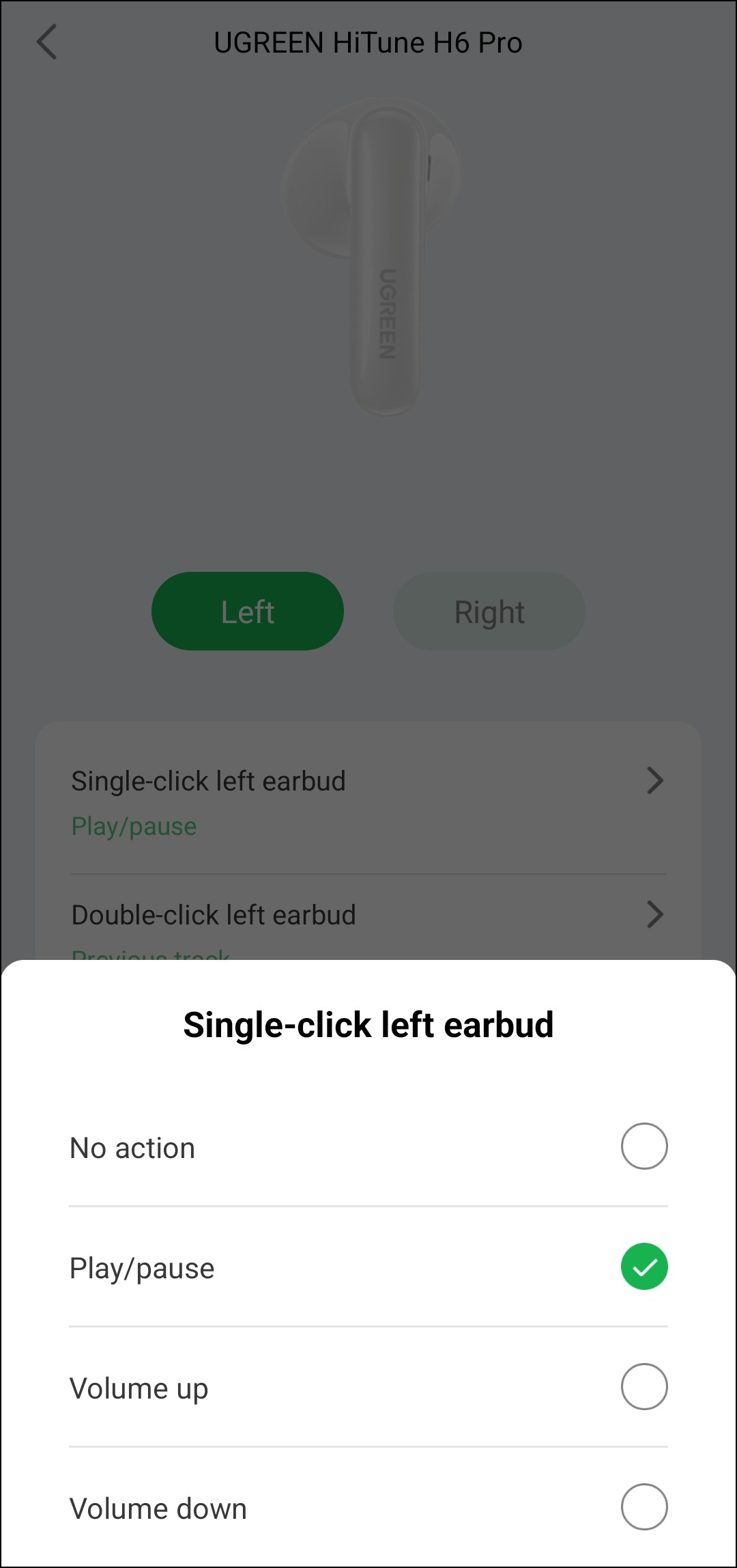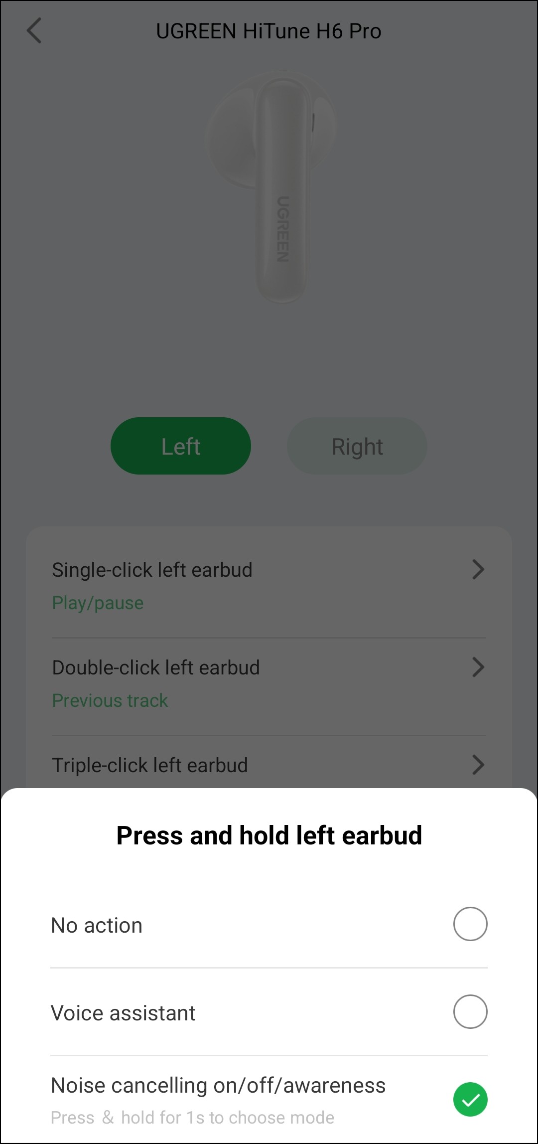 Оборудована Ugreen HiTune H6 Pro и датчиками ношения, поведение которых настраивается. Естественно, их можно просто отключить, хотя делать это особых причин нет — работают они корректно, случайными срабатываниями не беспокоят. Если же они включены, воспроизведение ставится на паузу, когда какой-нибудь наушник вынимается из уха. А вот при помещении его обратно воспроизведение может либо продолжаться, либо оставаться на паузе — на выбор пользователя.