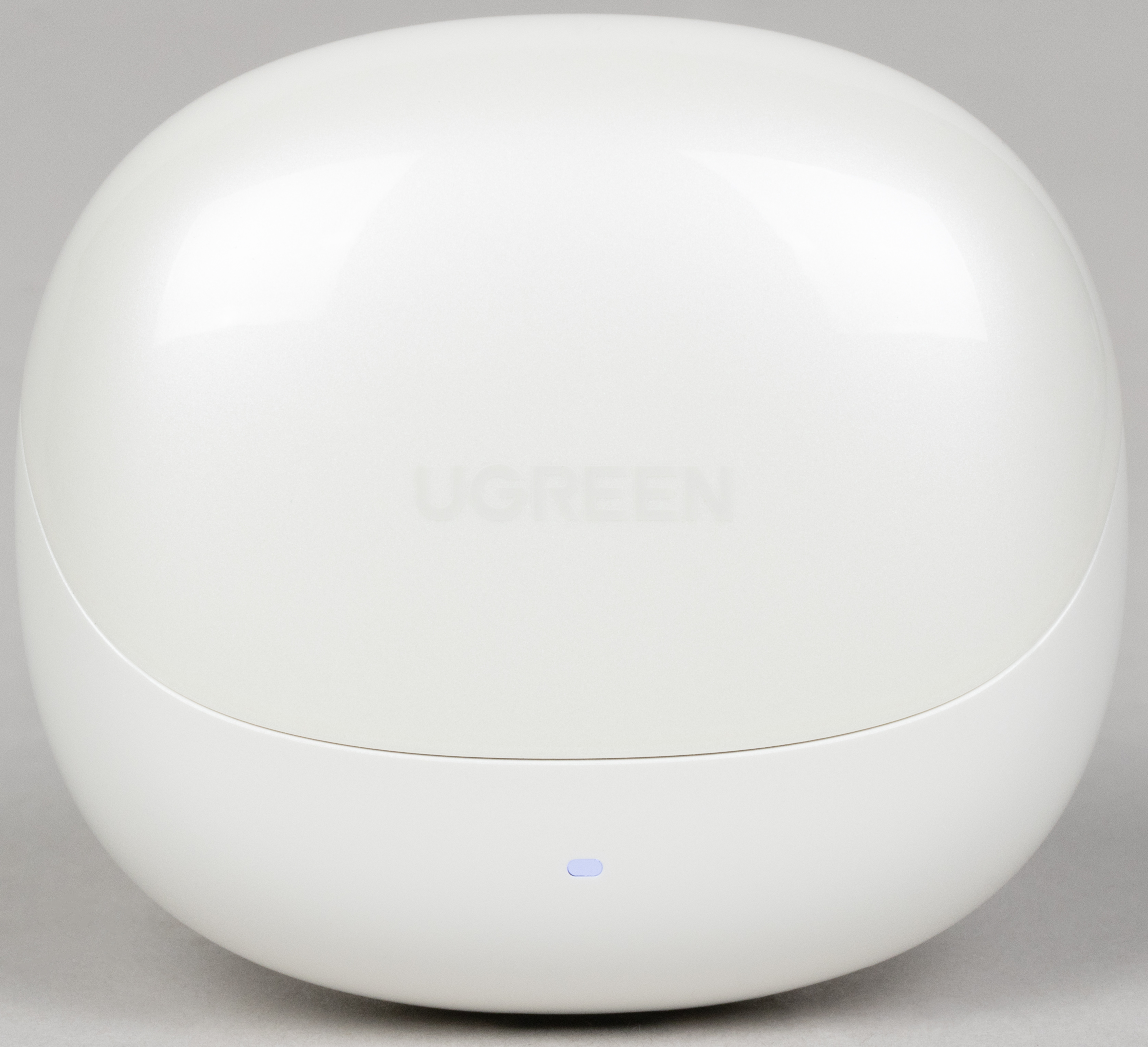 На передней панели находятся едва заметный логотип бренда, а также маленький светодиодный индикатор состояния и уровня зарядки устройства.