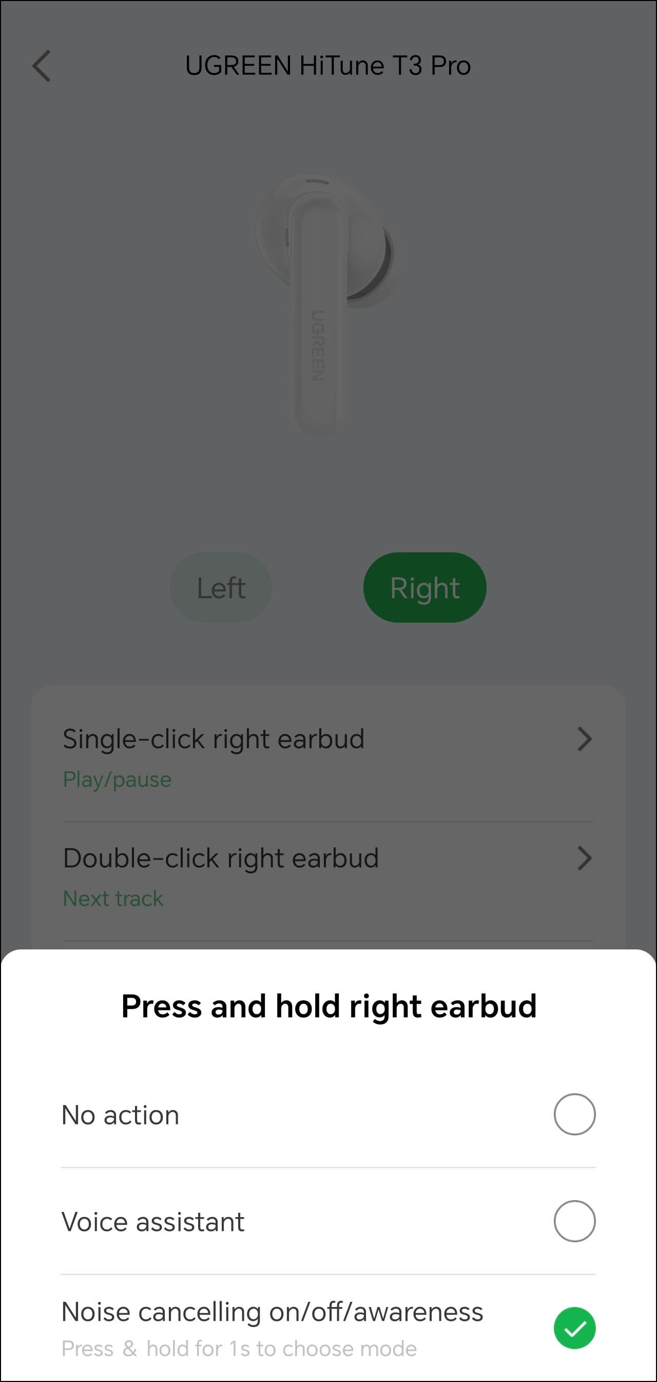 Список доступных действий у правого и левого наушников при этом не отличается, что тоже очень хорошо — можно одновременно получить быстрый доступ и к управлению шумоподавлением, и к вызову голосового ассистента, например.