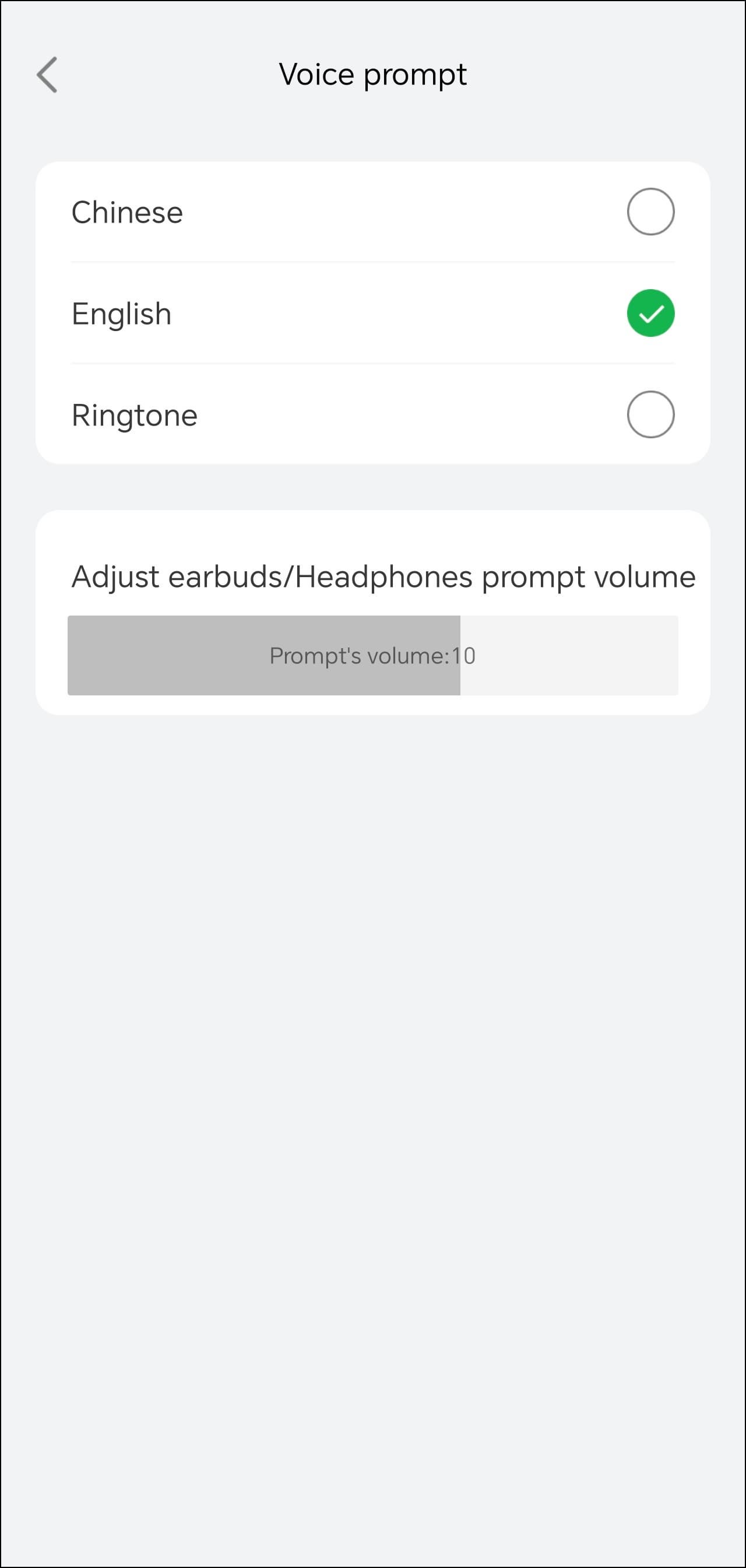 А вот чего нет, так это датчика ношения — а следовательно, активируемой им автопаузы. От бюджетных гарнитур мы его пока и не ждем, хотя уже периодически встречаем. В меню настроек можно изменить имя устройства, сбросить его до заводского состояния, а также выбрать язык голосовых оповещений — английский или китайский. Если оба варианта не устраивают, есть вариант ограничиться просто тоновыми сигналами.