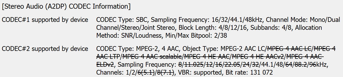 | Поддержка кодеков | SBC, AAC |