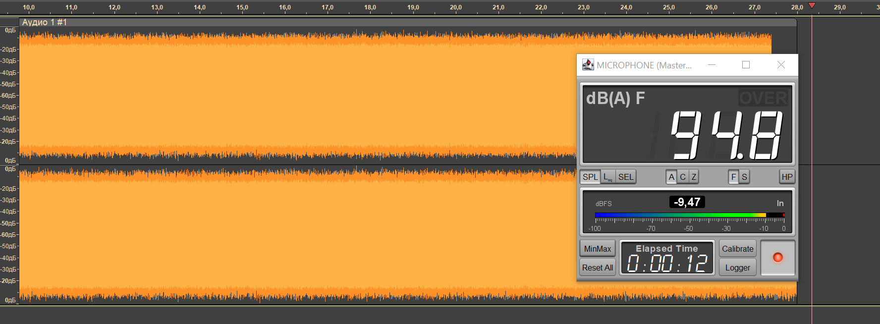 Посмотрим, как покажут себя в работе микрофоны для голосовой связи. Ниже размещены два трека. На первом речь записана с помощью микрофонов гарнитуры. Второй записан на расположенный примерно на том же расстоянии профессиональный рекордер с заведомо высоким качеством записи и приводится для сравнения.