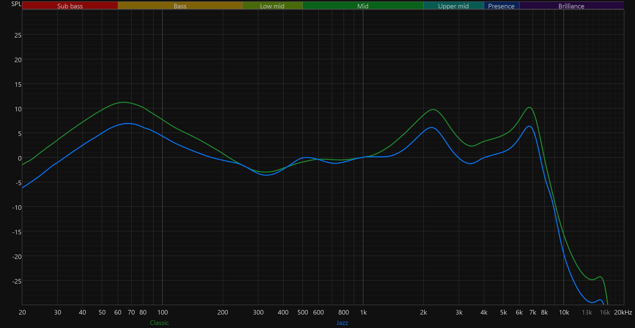 Как уже упоминалось выше, производитель предлагает несколько пресетов эквалайзера в приложении. Отдельно хотелось бы выделить один — под названием Jazz. Он чуть снимает акценты на краях воспроизводимого диапазона, делая звучание гарнитуры в целом немножко более сбалансированным. Остальные пресеты тоже работают эффективно, а вот предлагаемые ими звуковые профили — на любителя, скажем так. В основном всё крутится вокруг баланса тех же двух акцентов.