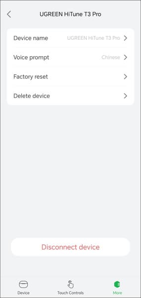 Управление HiTune T3 Pro осуществляется с помощью программы Ugreen Home, хорошо знакомой нам по другим устройствам компании. Скачивать версию под Android по-прежнему лучше напрямую с сайта производителя, QR-код со ссылкой есть в инструкции. Версия для устройств под управлением iOS существует, но работает не очень корректно, о чем свидетельствую отзывы пользователей. Перевод на русский пока не сделан, но разобраться можно — достаточно знать пару-тройку слов, да ориентироваться по иконкам.