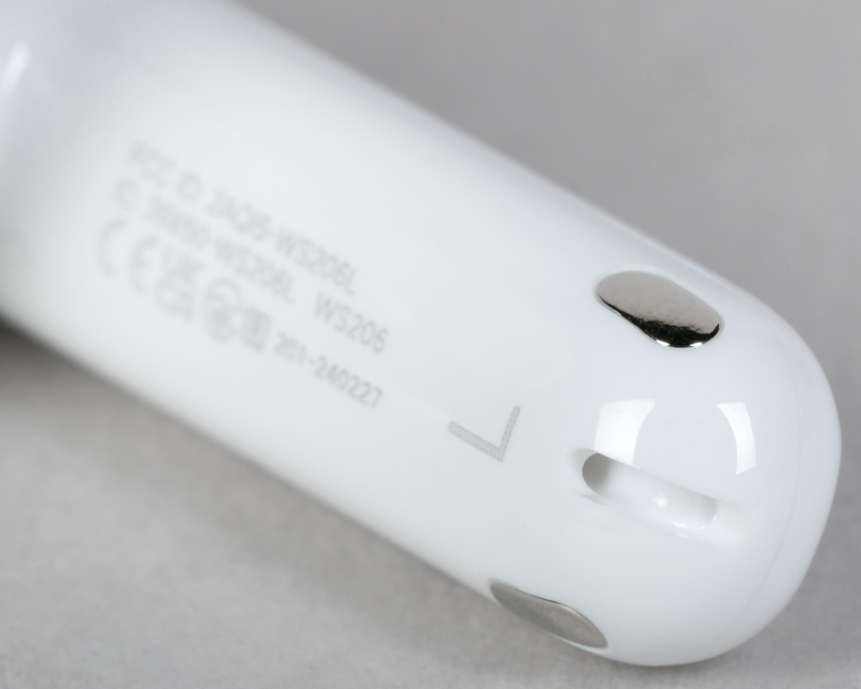 Еще один микрофон «шумодава» размещен за отверстием на боковой поверхности корпуса в месте стыка округлой части и палочки.