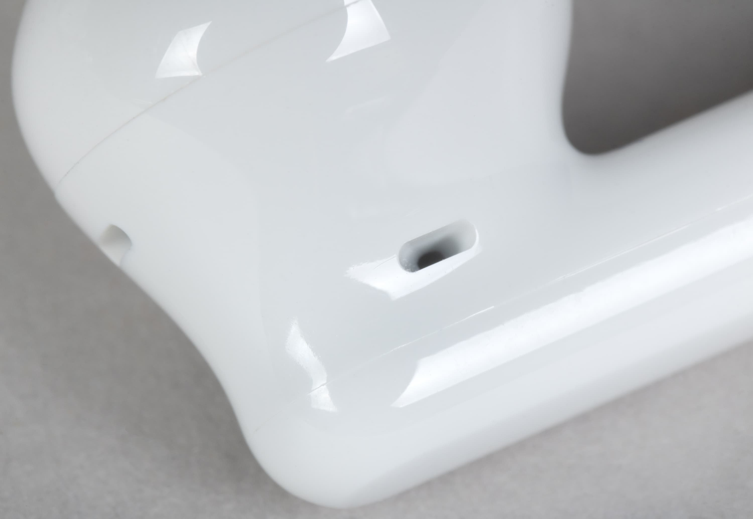 Наушники выполнены из глянцевого пластика, что очевидным образом сказывается на их устойчивости к загрязнениям. Зато глянец, как ни странно, обеспечивает лучшее «сцепление» корпуса с кожей чаши ушной раковины, делая более надежной посадкой — вероятно, поэтому год за годом разные производители отдают предпочтение именно ему.