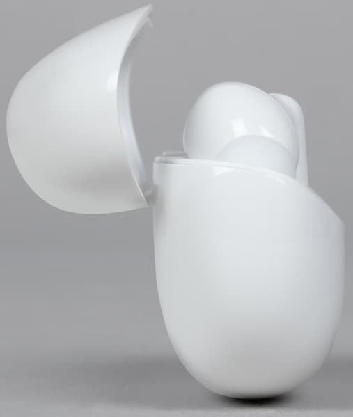 Ножки наушников помещаются в слоты где-то наполовину, по большей части удерживаются они магнитными креплениями. К качеству крепления никаких вопросов — случайно они вряд ли выпадут. При этом достать их из футляра несложно — нужно лишь слегка потянуть округлую часть на себя, а потом вверх.
