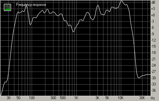АЧХ снималась микрофоном, расположенным по нормали к фронтальной стороне колонки, что исключает влияние фазоинвертора, направленного «в пол», на полученные данные. На самом деле акустика достаточно «басовита». В нижнем диапазоне присутствует любимый поклонниками электронной музыки объем и глубина, благодаря приличным размерам динамика бас имеет неплохую упругость и «панч». В некоторые моменты, особенно на низких уровнях громкости, наблюдается легкое преобладание басового диапазона, которое, впрочем, легко лечится встроенным эквалайзером. При повышении уровня громкости акустическая картина становится более равномерной, насыщенной и приятной.