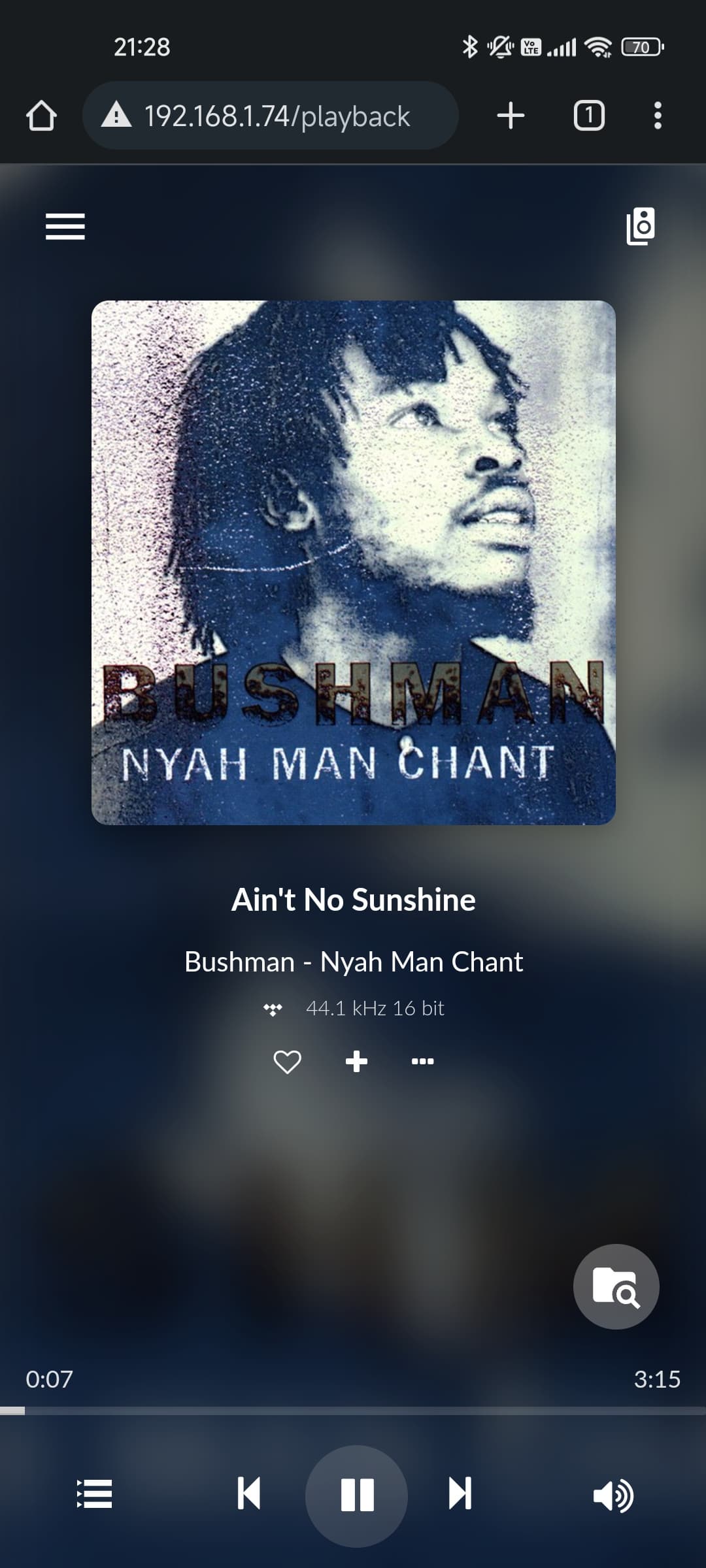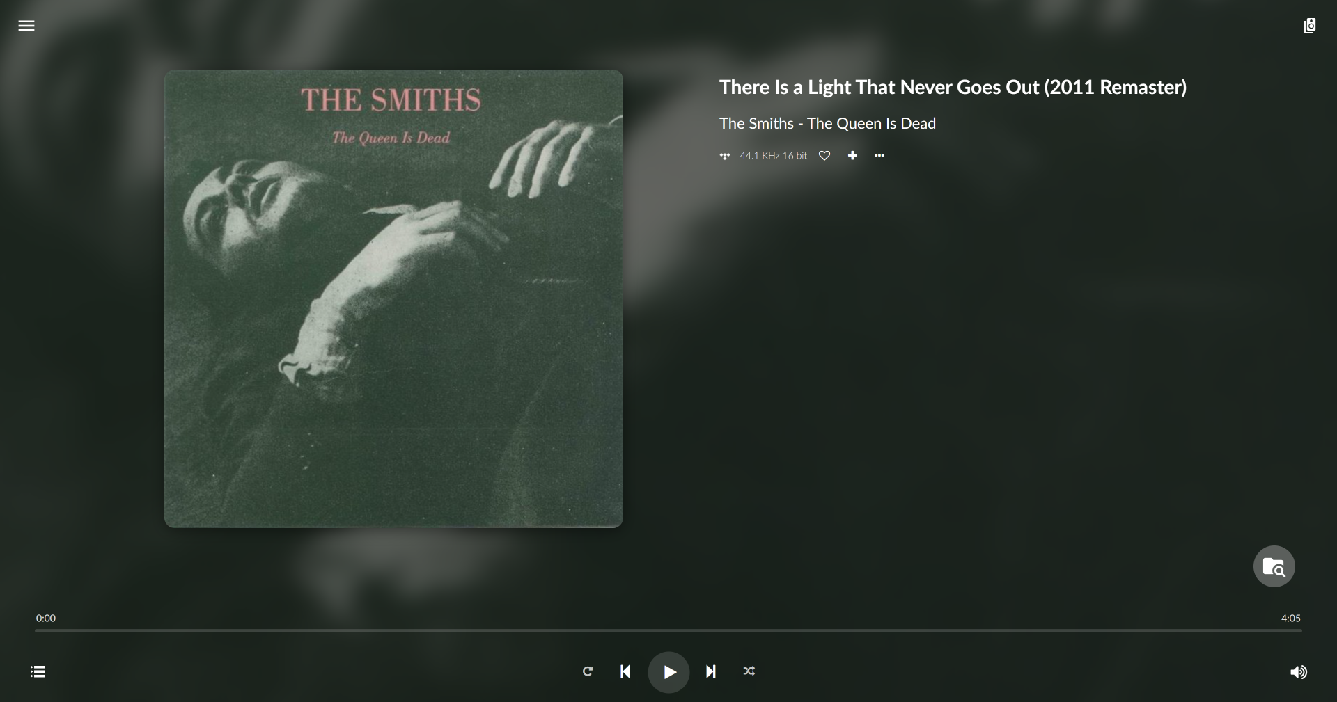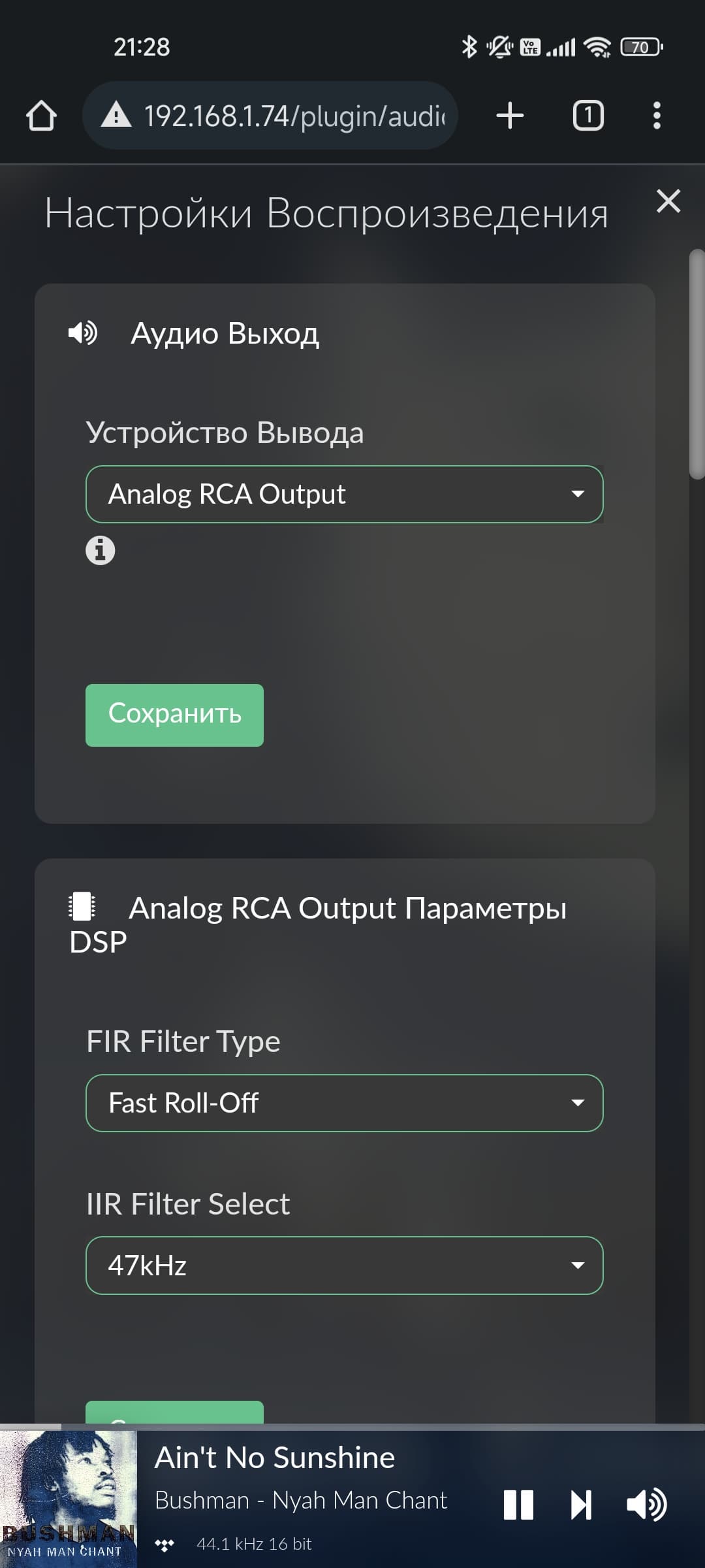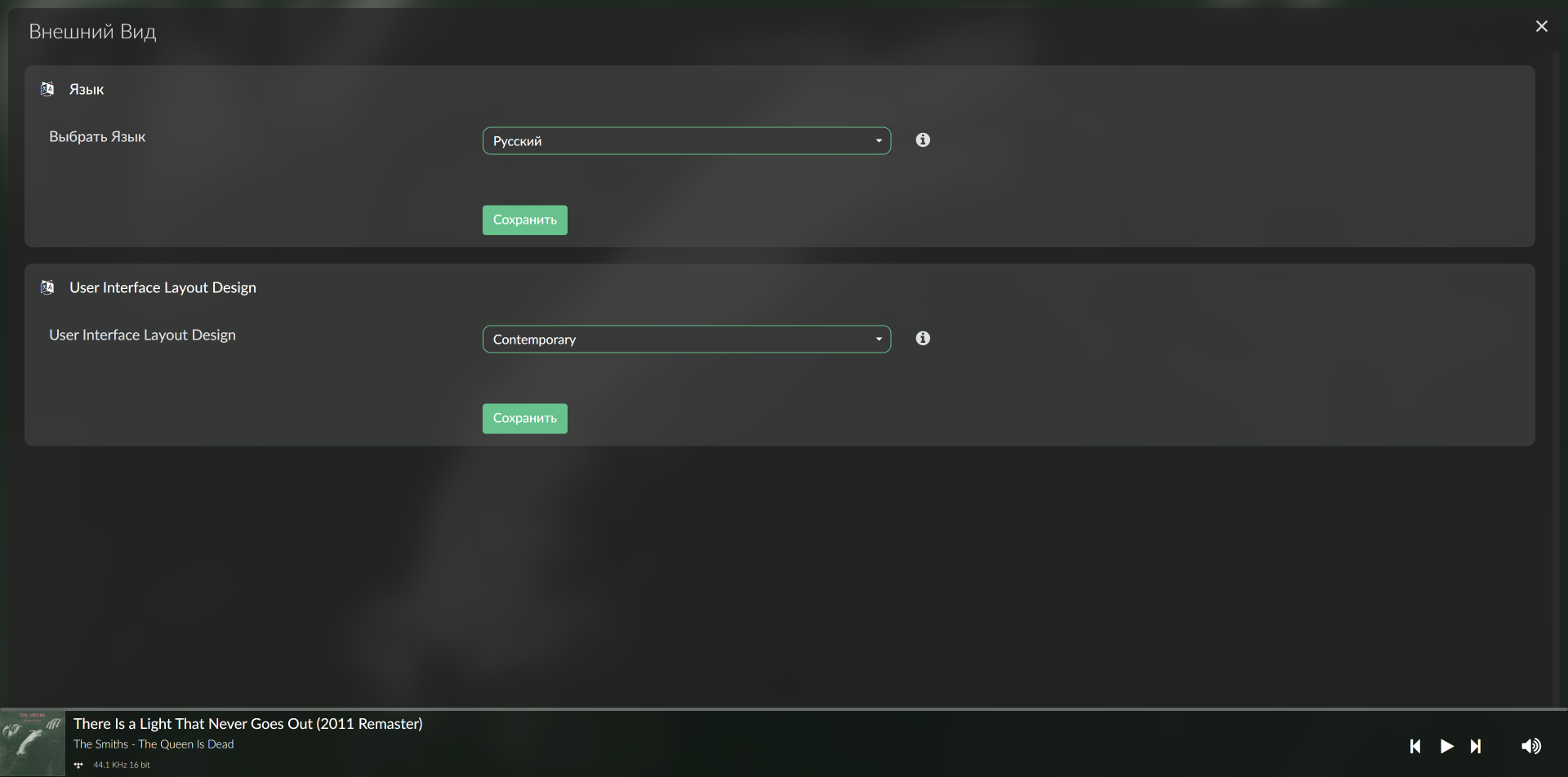 На экране проигрываемого трека демонстрируются информация о нем, обложка и данные об авторах. В правой колонке можно открыть настройки мультирума, управление воспроизведением размещено снизу.
