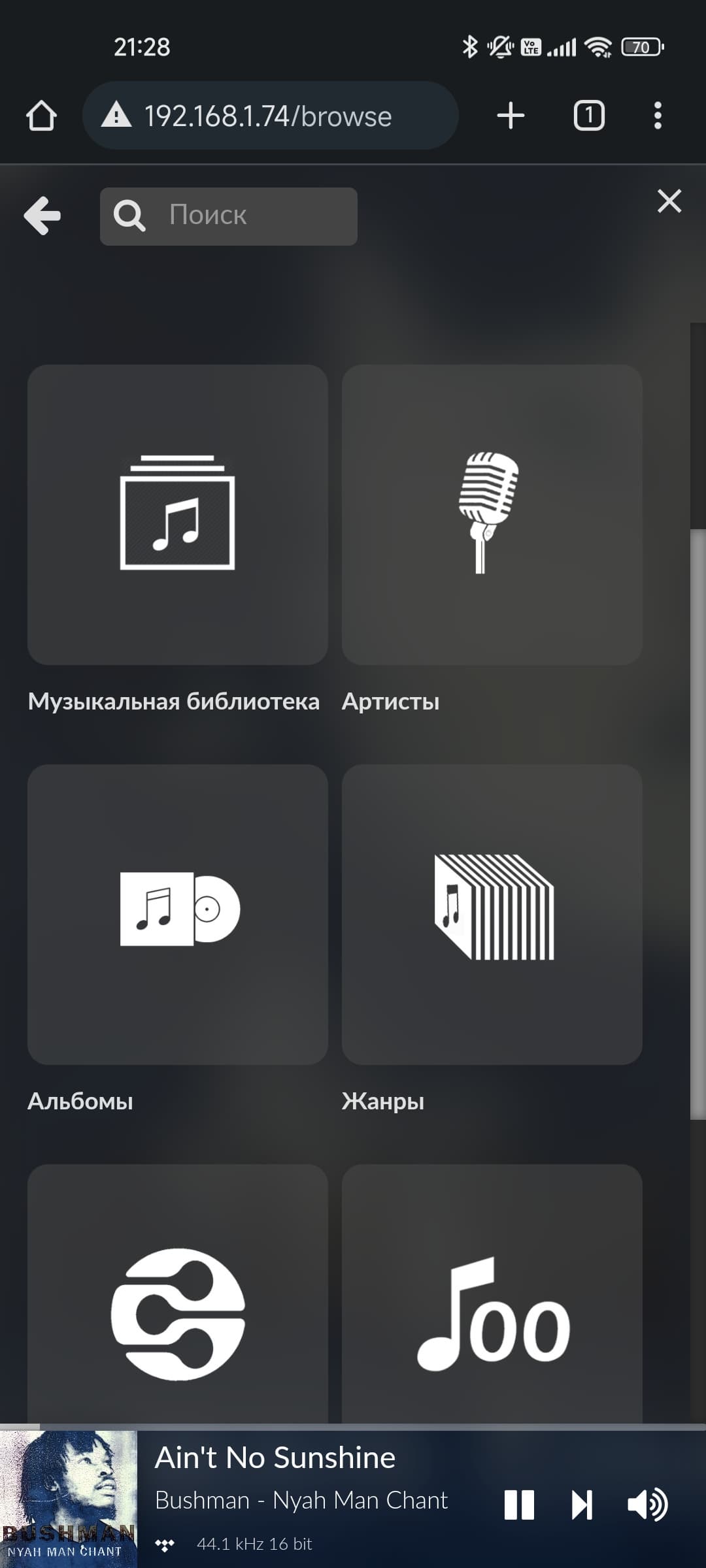 Находящийся в сети DLNA-сервер плеер тоже увидел без проблем, но с учетом наличия других сетевых функций DLNA — далеко не самый удобный вариант.