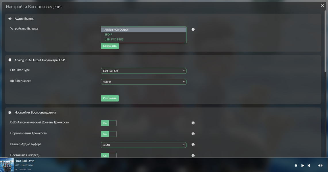 | Поддерживаемые форматы | AAC, AIFF, ALAC, DFF, DSF, FLAC, MP3, OGG, WAV и другие |