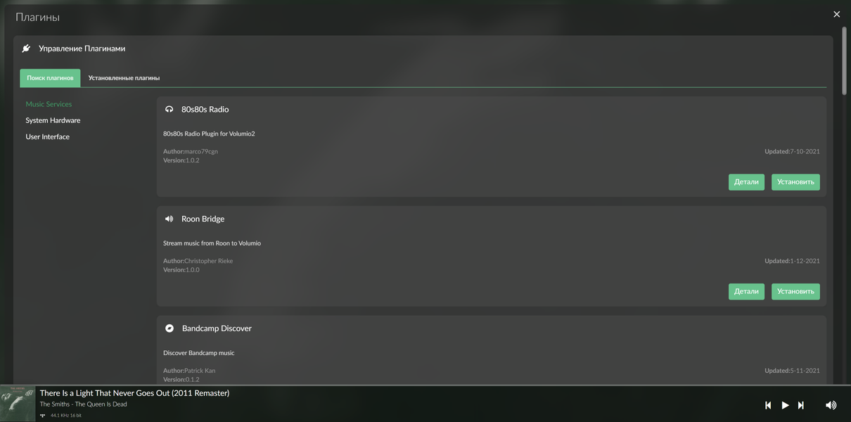 А еще у Volumio есть плагины, которые позволяют делать ну очень много всего интересного и полезного — этой вкладке стоит уделить как-нибудь свободные полчаса: посидеть, почитать описания, возможно — что-то и попробовать…