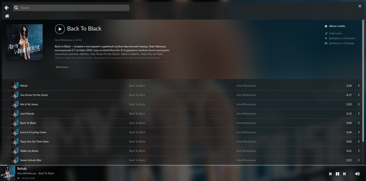 Ну и, конечно, его величество Tidal. Все работает, интерфейс приятный — чуть хуже, чем у оригинального приложения, но привыкнуть можно легко.