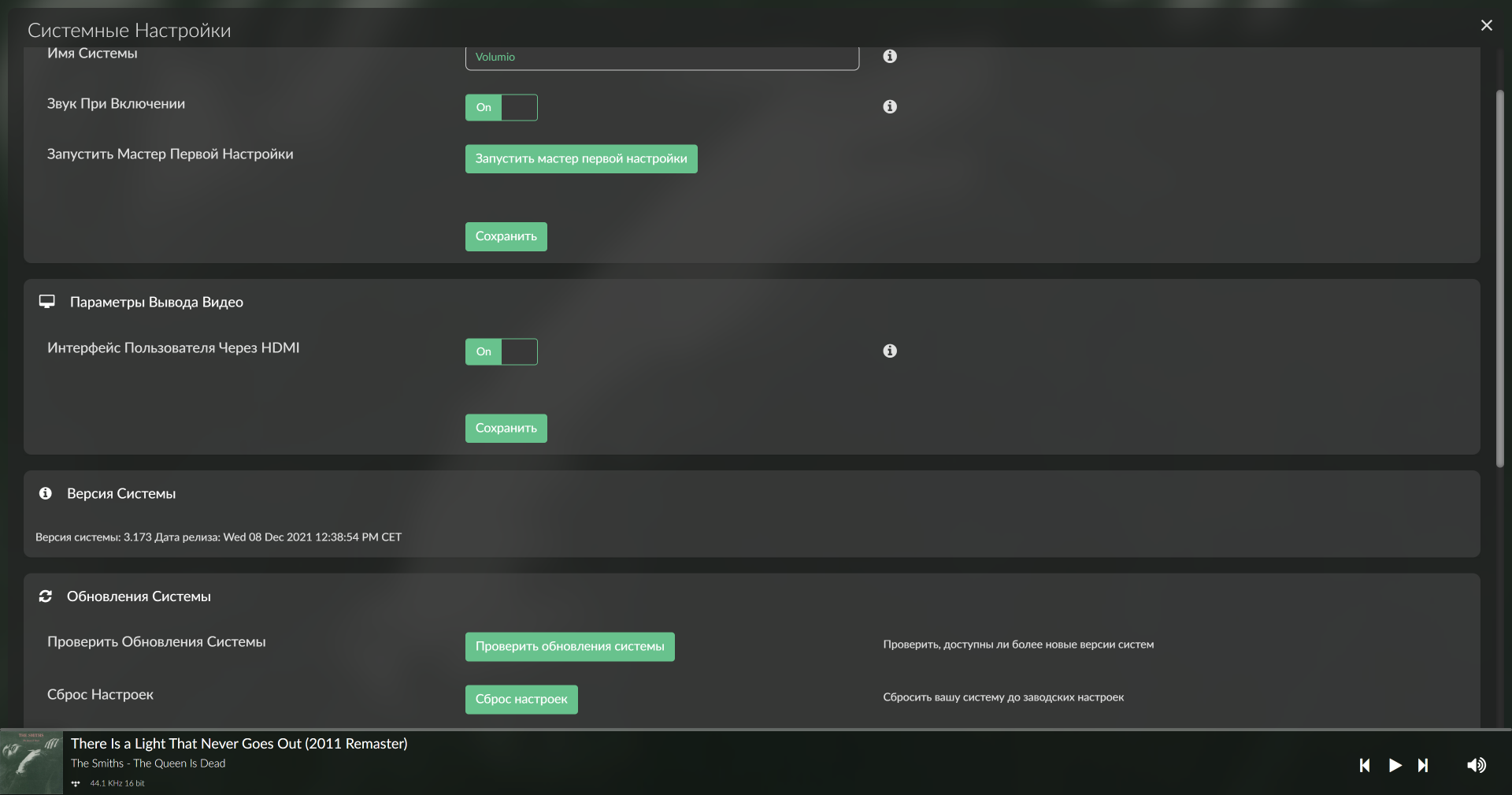 Но это если захочется — в целом, достаточно просто подключить плеер к усилителю с помощью выходов RCA. Цифровой выход S/PDIF тоже есть, но тут мы столкнемся с ограничением по выходному потоку 24 бит/192 кГц. Видеоконтент Volumio Primo воспроизводить не умеет, однако выход HDMI у него есть — он служит для отображения интерфейса управления на ТВ, что тоже может пригодиться в ряде случаев.