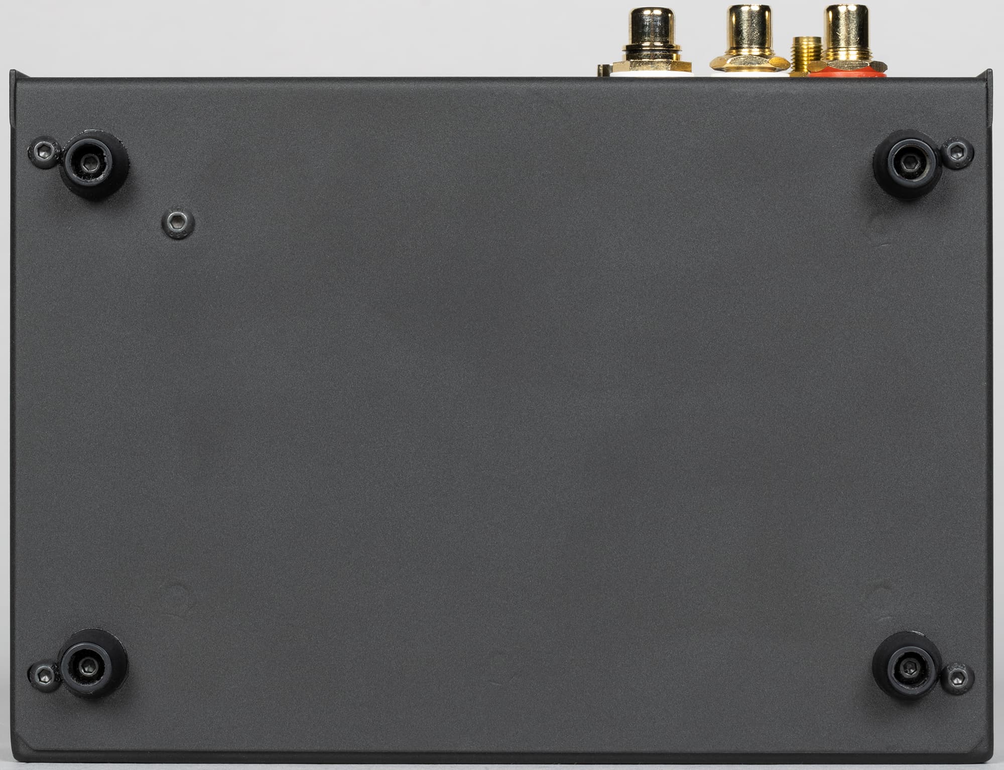 На нижней части корпуса закреплены сделанные из пластика конусообразные ножки высотой порядка 10 мм. Там же мы видим шляпки винтов, скрепляющих две половинки корпуса.