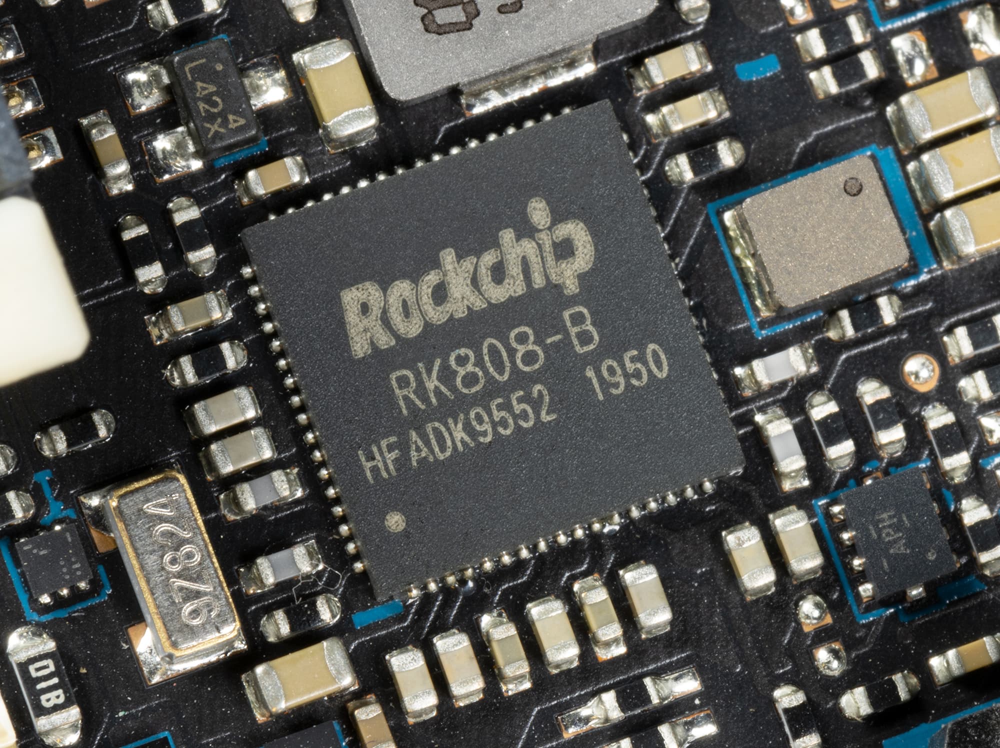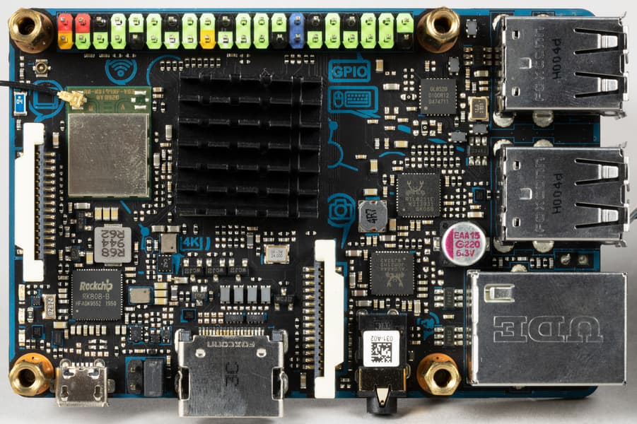 В качестве контроллера питания используется Rockchip RK808-B. Четырехпортовый хаб USB 2.0 реализован на GL852G (Genesys Logic).