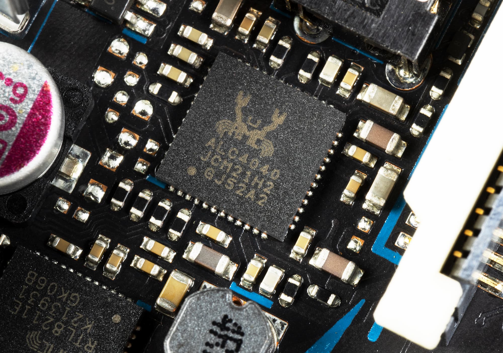За поддержку Ethernet отвечает Realtek RTL8211E, также на плате присутствует микросхема Realtek ALC4040 — в данном случае она, вероятно, не используется. Присутствующий на плате аудиоразъем миниджек 3,5 мм также остался на месте, но на заднюю стенку устройства не выведен.
