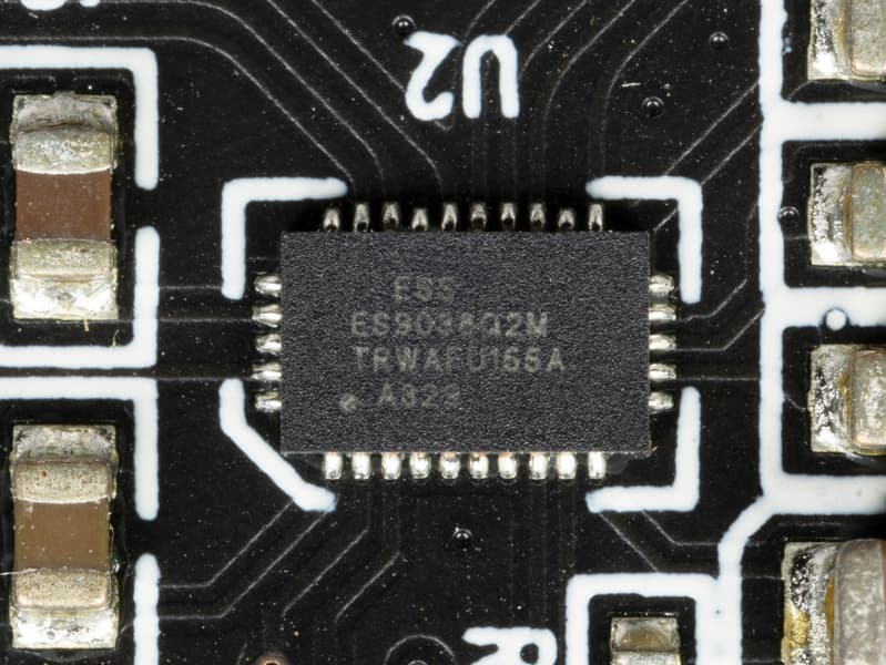 Но самое интересное тут — это, конечно, успевший хорошо себя зарекомендовать ЦАП ESS ES9038Q2M. Много рассказывать про него не будем — лучше дадим ссылку на подробный даташит, размещенный на сайте производителя.