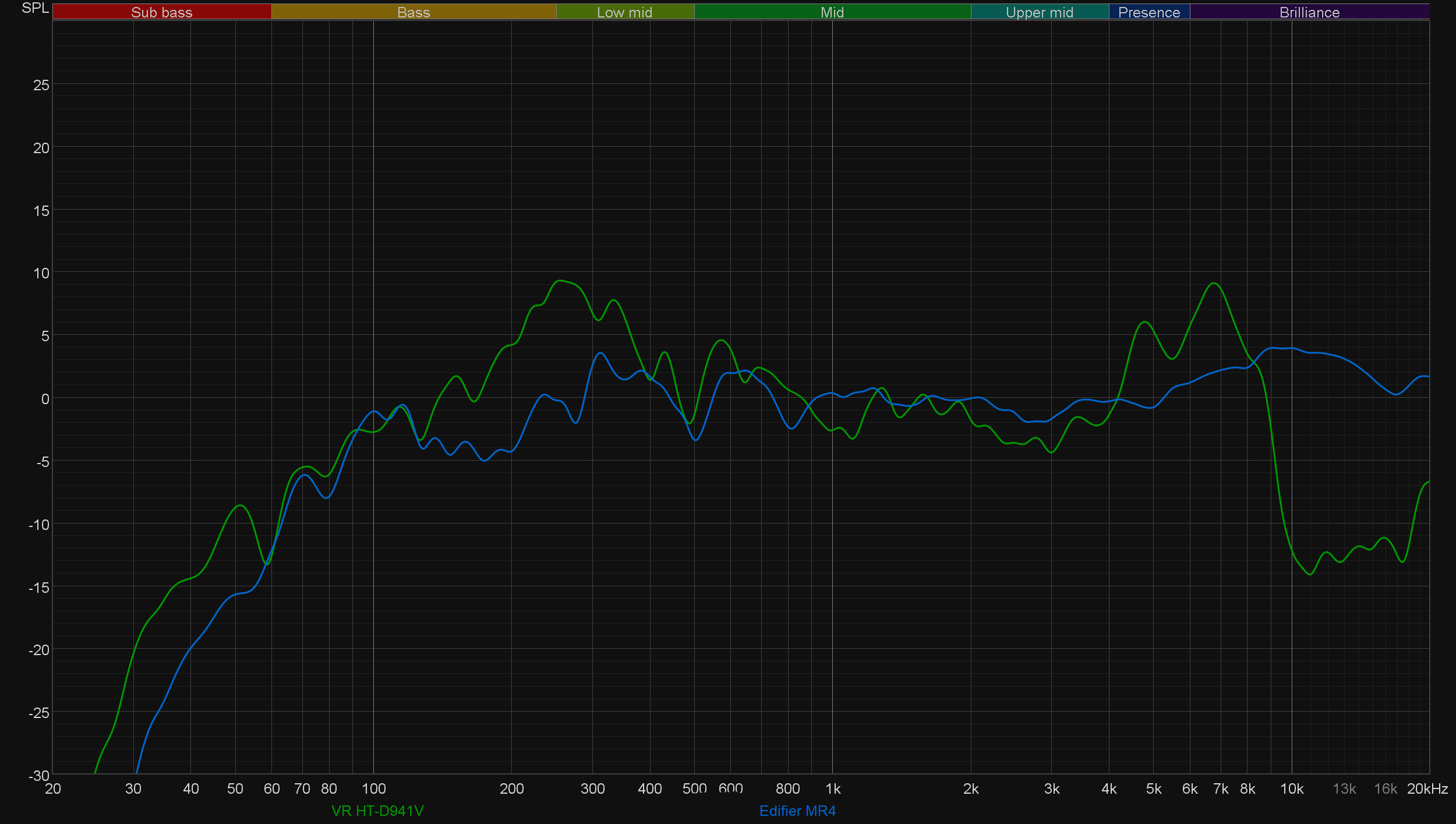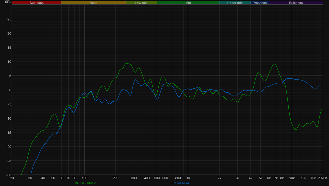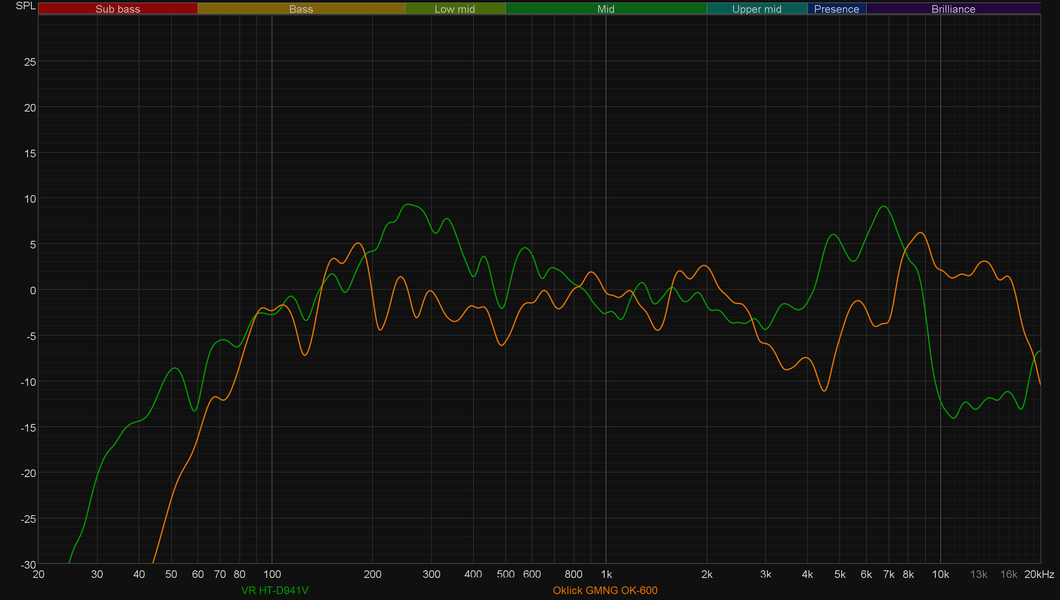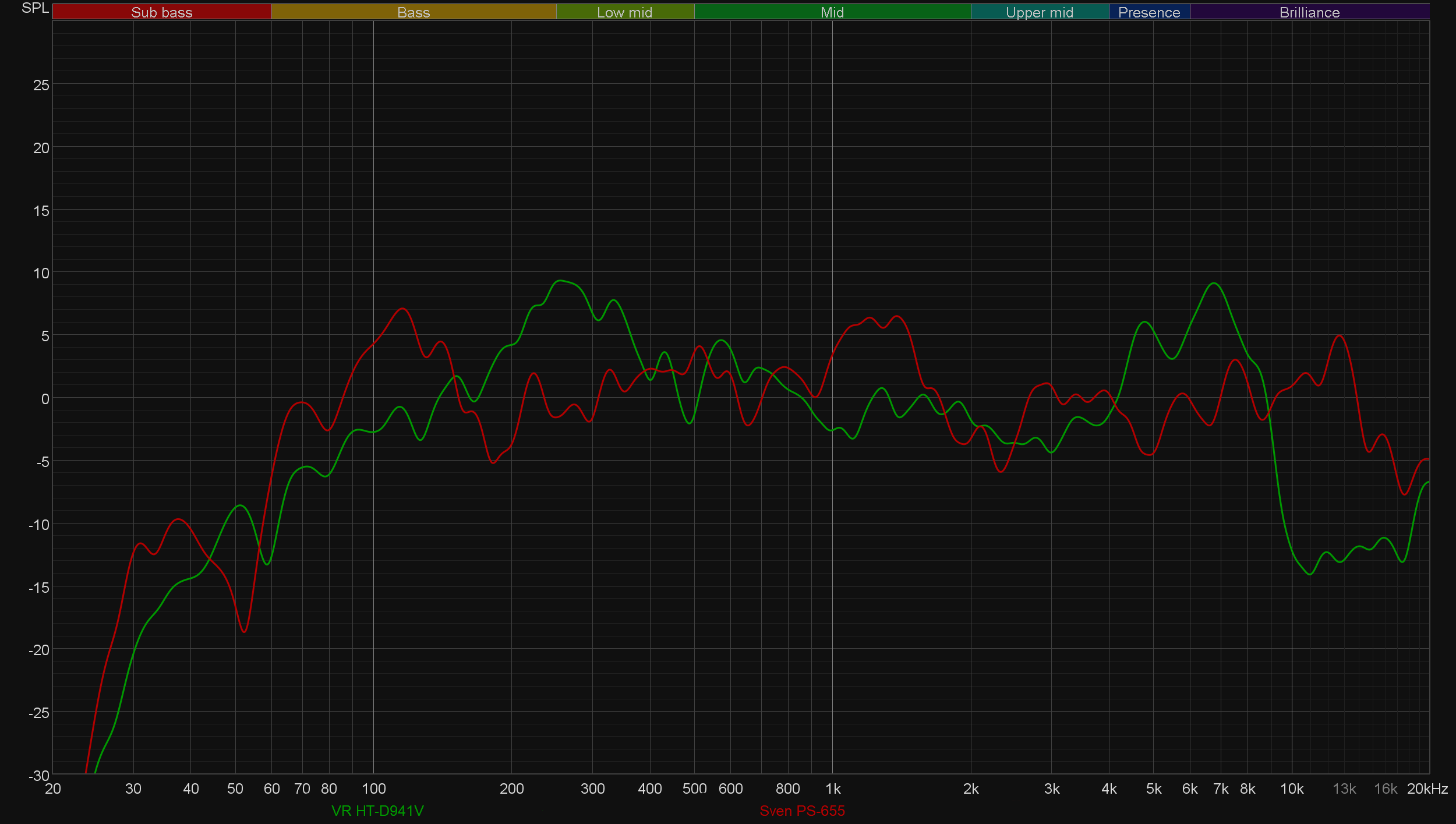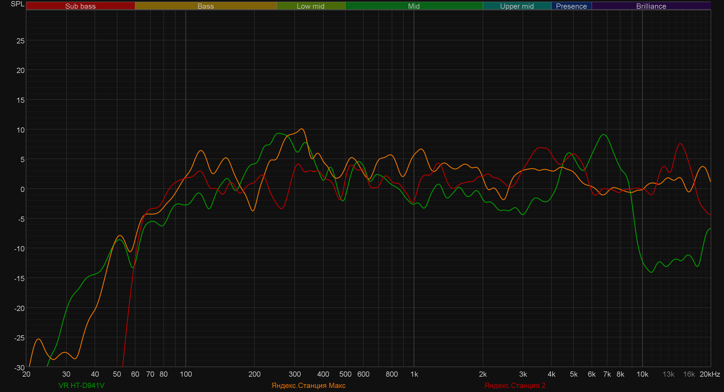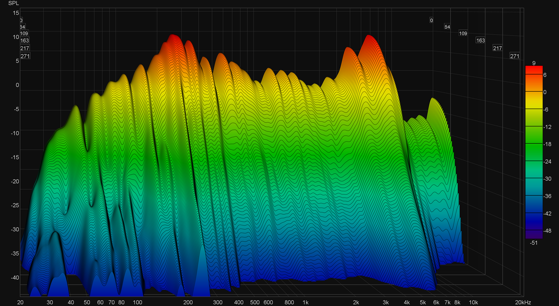 Но продолжим с VR HT-D941V. Корпус без демпфирующего материала внутри склонен к «гудению», что прекрасно видно на графике кумулятивного затухания спектра (он же «водопад» или waterfall).