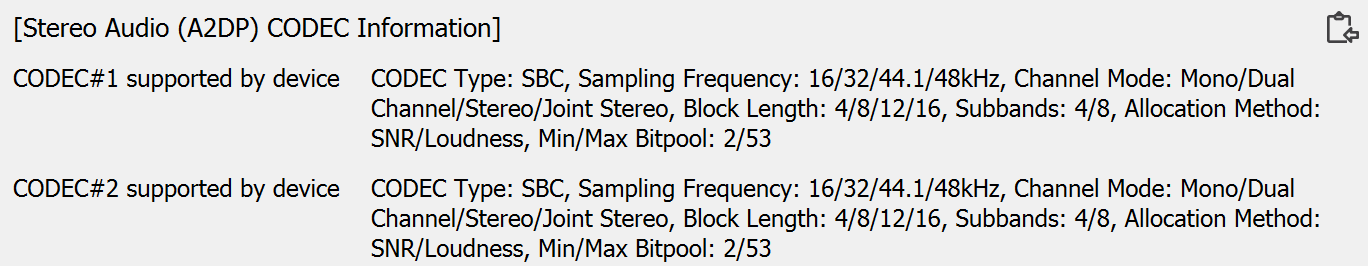 Мультипойнт не поддерживается, кодек всего один — SBC, что было традиционно проверено с помощью утилиты Bluetooth Tweaker.