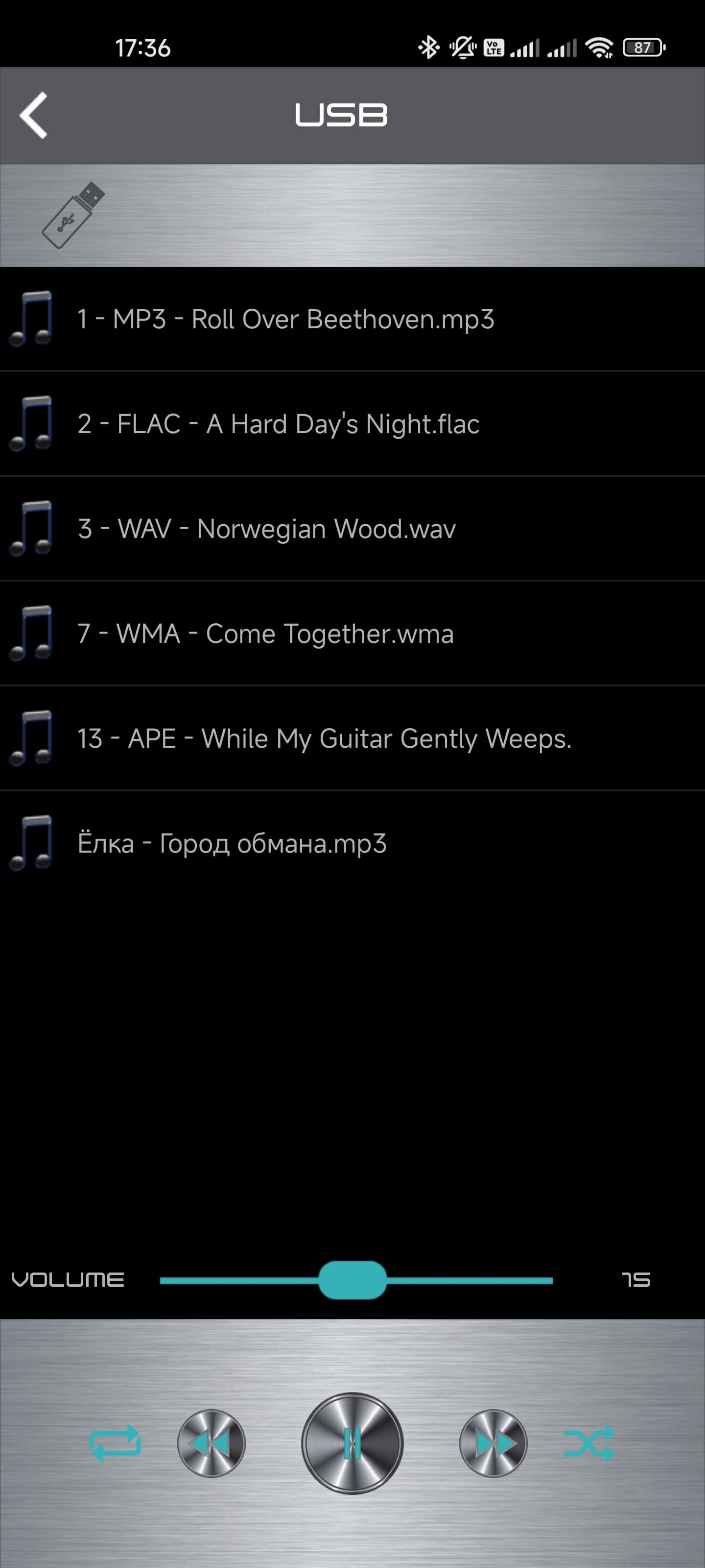 В целом, конечно, можно использовать для подключения и разъем миниджек на передней панели. Но смотреться постоянно торчащий кабель будет не очень. А еще наш экземпляр при проводном подключении начинает ощутимо фонить даже на громкости ниже средней. В общем, так себе опция. Встроенный плеер работает более-менее корректно, поддерживает файлы MP3, FLAC, WAV, WMA и APE — в последнее время это стандартный набор. Индикатор на передней панели способен показывать только номера треков, так что хранить файлы логичнее в корне накопителя.