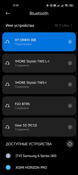 Видимо, разработчики предлагают пользоваться беспроводным подключением. Будущее наступило, причем в принудительном порядке — нечего тут всякими кабелями баловаться. Что делать, подключаемся посредством Bluetooth. Версия, кстати, старенькая — 4.2, но придираться к таким мелочам нет уже ни сил, ни желания. Активируем соответствующий вход с помощью пульта или кнопок на панели, некоторое время акустика пытается найти «знакомые» устройства, потом запускает процесс сопряжения. Остается найти ее в меню гаджета.