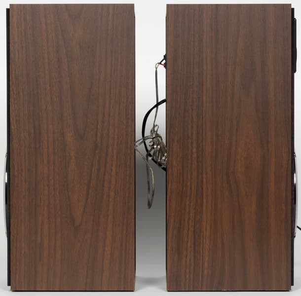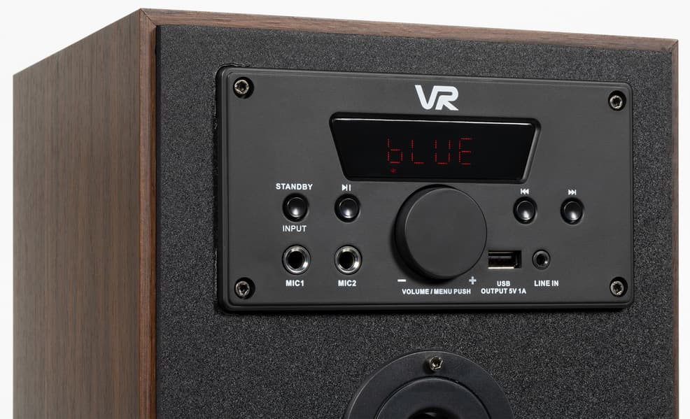 Судя по описанию на сайте, акустика производится в двух вариантах цветового исполнения: коричневом и черном. У нас на тестировании был первый. Выглядят колонки вроде бы и неплохо, но все же сразу дают понять — многого ждать тут нельзя. Дешевые материалы, аляповато нанесенные логотипы и иконки, дизайн панелей в духе «подвального Китая»… Хотя, тут дело вкуса, конечно — возможно, кому-то и понравится.