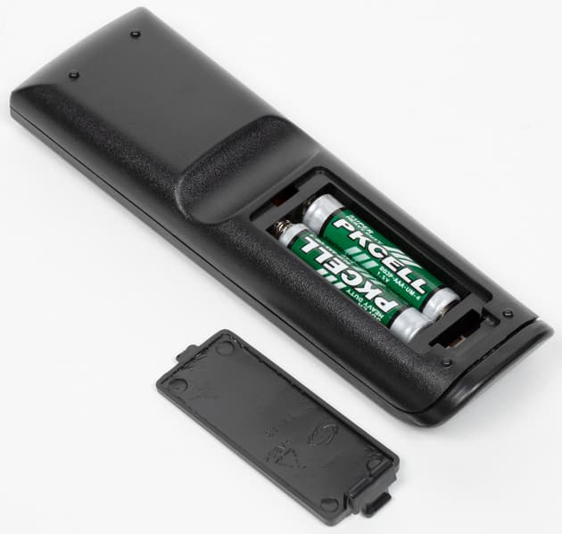 Раз уж заговорили про микрофонные входы. Они работают, есть даже встроенный блок эффектов со множеством настроек. В целом, игрушка получается довольно интересная — любителям караоке может прийтись по душе. Можно и песен попеть, и эффектов на голос наложить — на пару вечеров развлечений точно хватит. А мы идем дальше — смотрим на пульт дистанционного управления. Питается он от двух элементов ААА.
