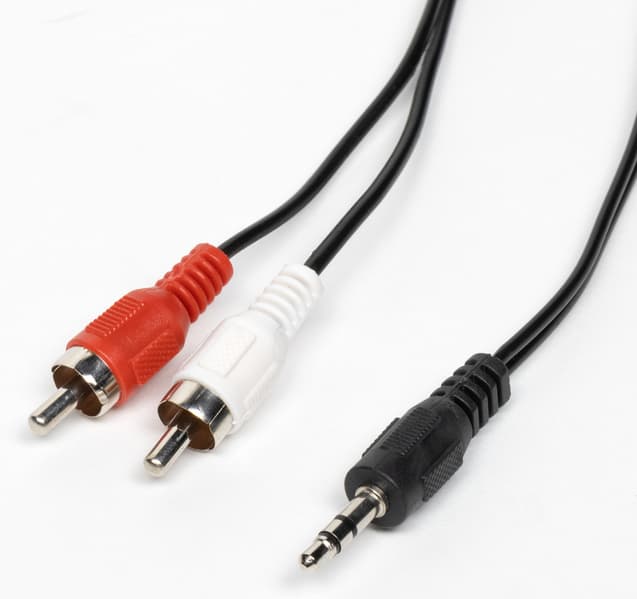 Кабель миниджек — 2×RCA длиной 1,5 метра для проводного подключения к источнику звука не поражает воображение качеством исполнения, но в целом вполне справляется со своей функцией. Ну и соответствует уровню качества устройства в целом, скажем так.