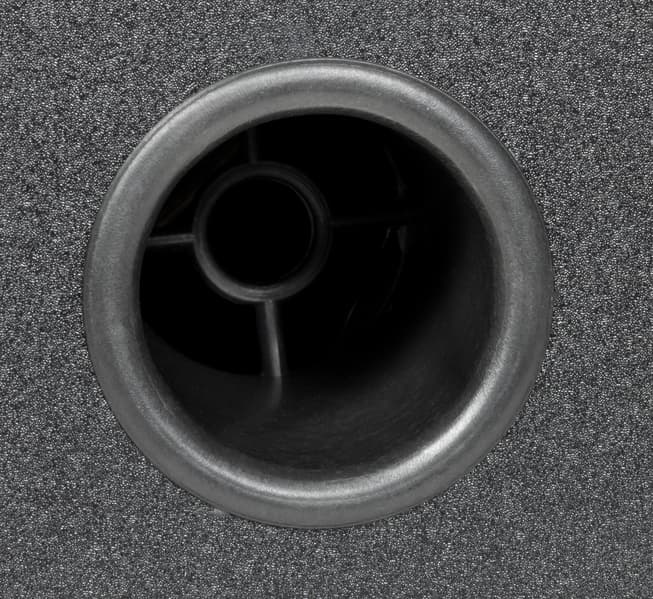 В нижней части задней панели находится отверстие фазоинвертора, внутри которого виднеется защитный пластиковый элемент.