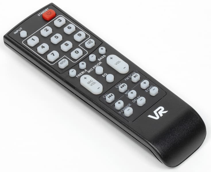 Все кнопки подписаны, что видно на иллюстрации ниже — не будем вдаваться в лишние детали. Отметим лишь, что управлять можно всеми параметрами, включая эффекты микрофона — удобно. Пульт приятен в использовании, кнопки нажимаются с отчетливым кликом. В общем, тут все очень даже неплохо.