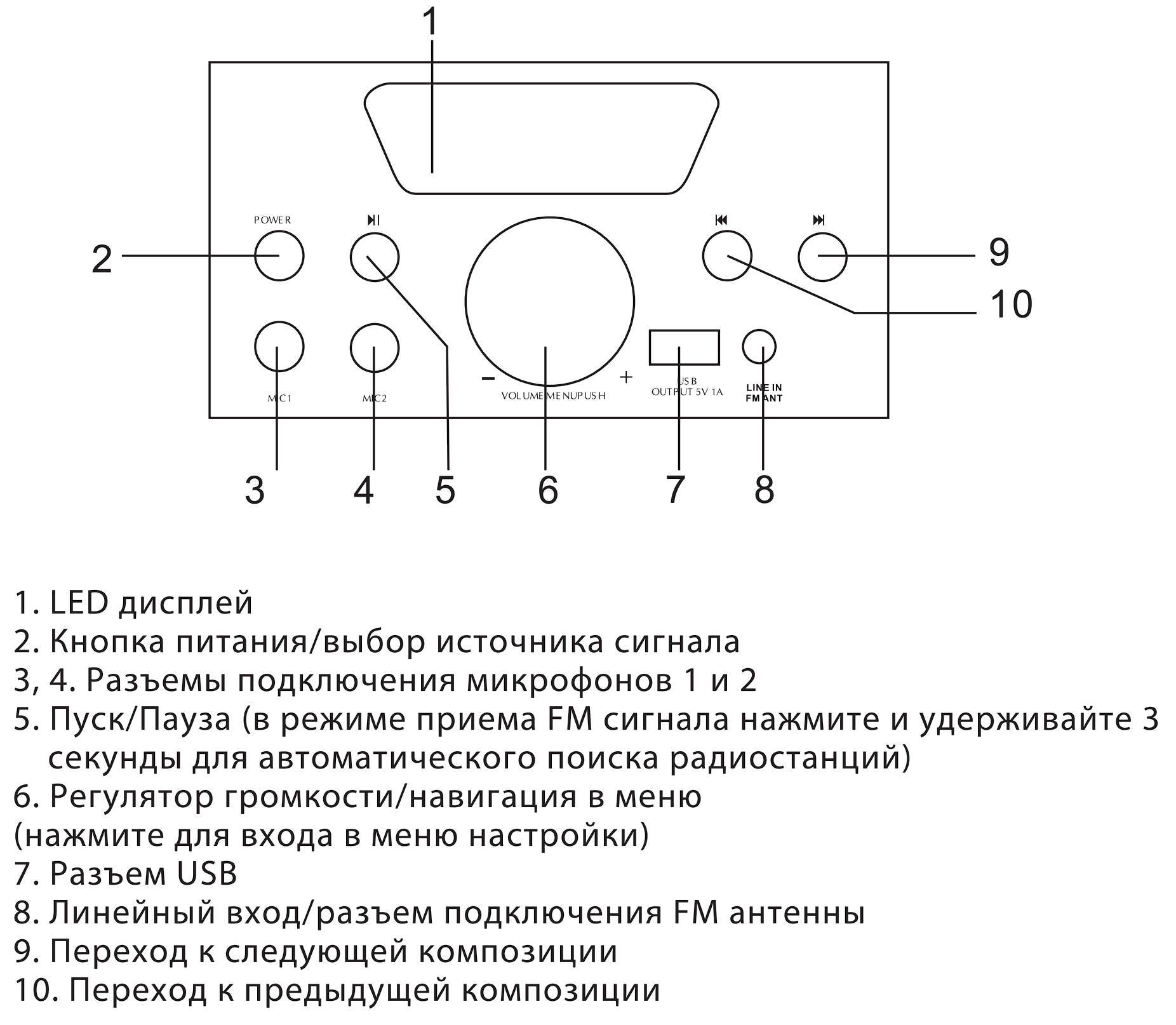 | Подключение | Bluetooth 4.2 линейный вход (миниджек) микрофонный вход (2×jack) USB для флеш-накопителя |
