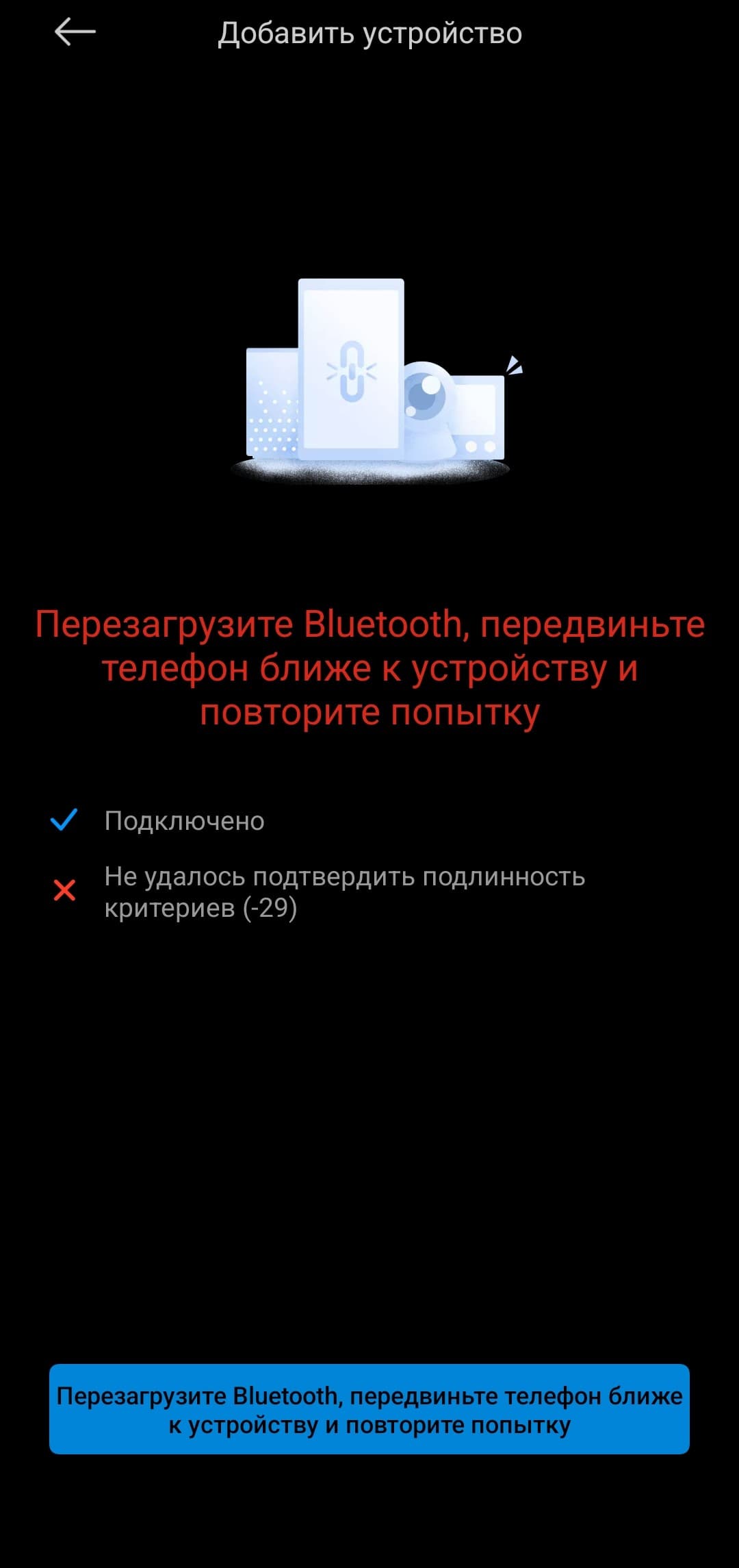 Настроить управление колонкой через приложение Mi Home тоже не получится, но польза от него все же есть — установить стоит. Например, только там можно отключить подсветку: отдельной кнопки для этого не предусмотрено. Однако при подключении возникли очередные трудности. Приложение сообщило, что ему «не удалось подтвердить подлинность критериев» — что бы это ни значило. Пришлось разорвать сопряжение с устройством и настроить все заново, иначе проблема не решалась.