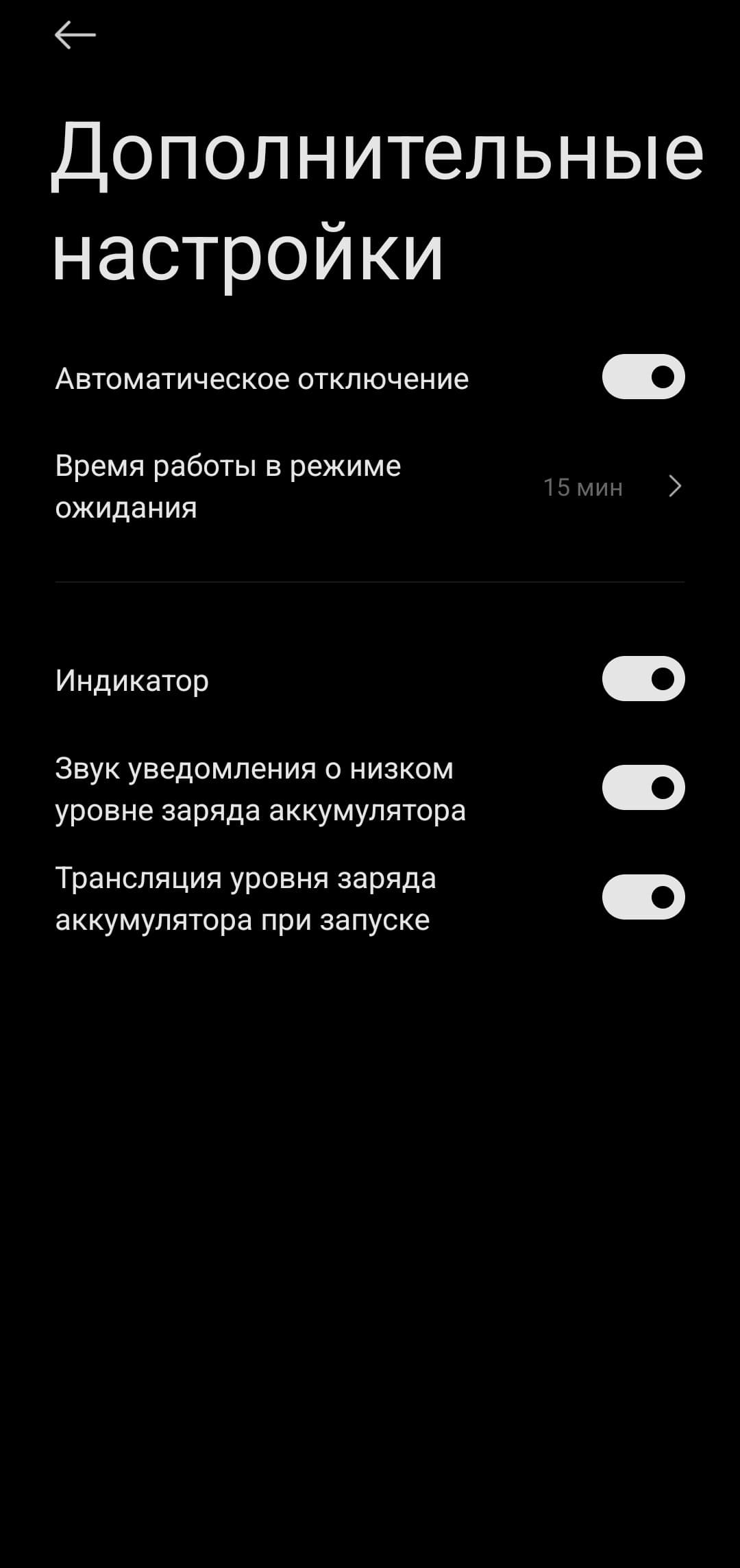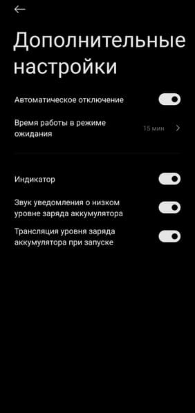В отдельной вкладке можно настроить подсветку: выбрать один из режимов и задать цвет свечения для двух из них — постоянного и пульсирующего. На странице дополнительных параметров доступны установка времени автоотключения колонки при бездействии, а также отключение индикации, сигнала о низком уровне заряда и голосового сообщения о заряде при включении.