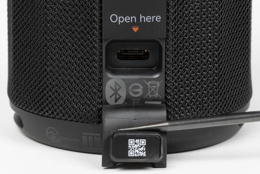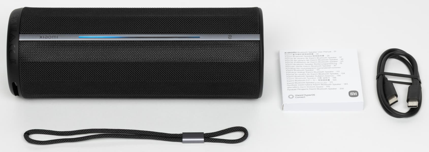 В комплект, помимо самой колонки, входят краткая инструкция, съемная ручка-петля для переноски и кабель USB Type-C/Type-C для зарядки.