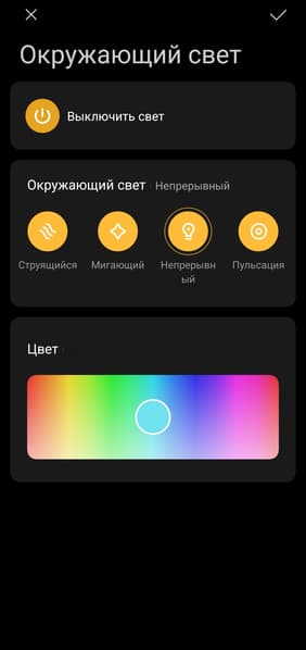 Подсветка скорее выступает как дополнительный визуальный акцент, чем создает атмосферу, заливая светом пространство вокруг. На фоне других колонок, где одновременно подсвечиваются передняя панель и пассивные излучатели на торцах, она выглядит менее эффектно. Зато крайне органично вписывается в минималистичное оформление. Световая полоса состоит из 12 RGB-светодиодов и поддерживает четыре предустановленных режима, которые можно переключать прямо во время воспроизведения музыки. Эффекты динамические, но синхронизации с ритмом треков нет. При желании подсветку можно отключить через приложение Mi Home.