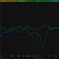 Трехполосный эквалайзер работает с разной эффективностью. С басом он справляется посредственно: добавить его почти невозможно — динамики и так работают на пределе, а вот убрать лишний гул удается без проблем. Средние корректируются лишь частично: эквалайзер в основном воздействует на нижнюю часть СЧ-диапазона, за счет еще более выраженного пика в районе 400—500 Гц звук становится чуть плотнее. Но вокал и инструменты в верхней середине все равно остаются приглушенными. С высокими частотами эквалайзер работает заметно лучше: можно добавить яркости или, наоборот, сгладить излишнюю резкость. Компенсировать же провал в районе 1,5 кГц эквалайзер, разумеется, не способен.