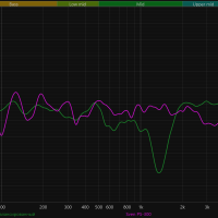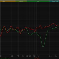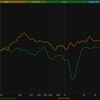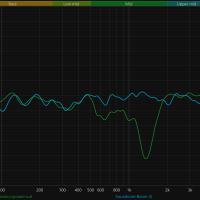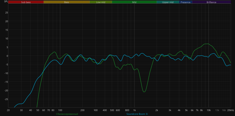 А вот со средними частотами у колонки явные проблемы. В диапазоне от 200 до 800 Гц идет плавное снижение, из-за чего вокал звучит немножко глуховато, а инструменты вроде гитары или клавишных теряют плотность и объем. Но самый серьезный минус — это, конечно, глубокий провал около 1,5 кГц. Эта область отвечает за атаку и артикуляцию, поэтому речь, вокал и ударные звучат менее выразительно, а общая подача теряет цельность. Вероятная причина — несогласованность работы широкополосного динамика и твитеров, что выглядит странно для устройства с «профессиональной настройкой».