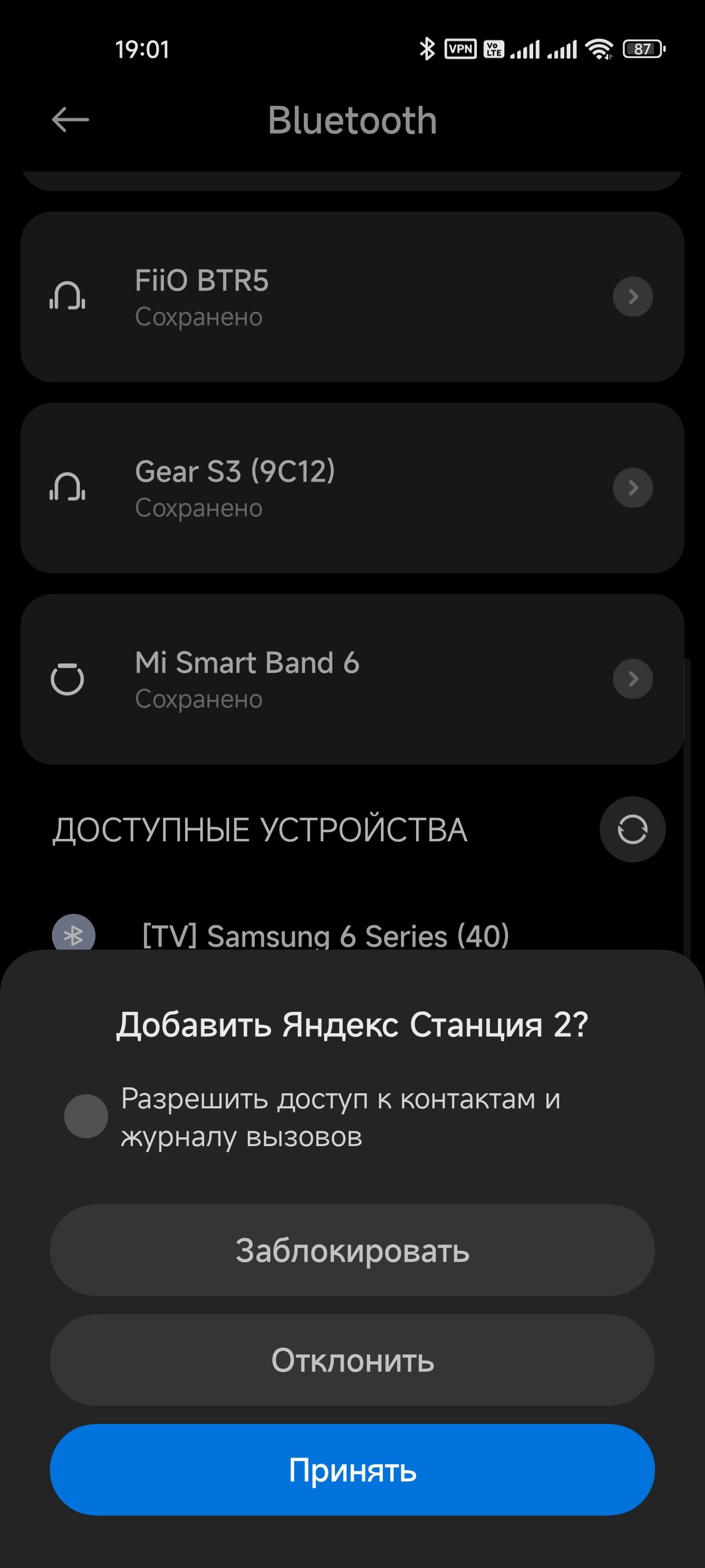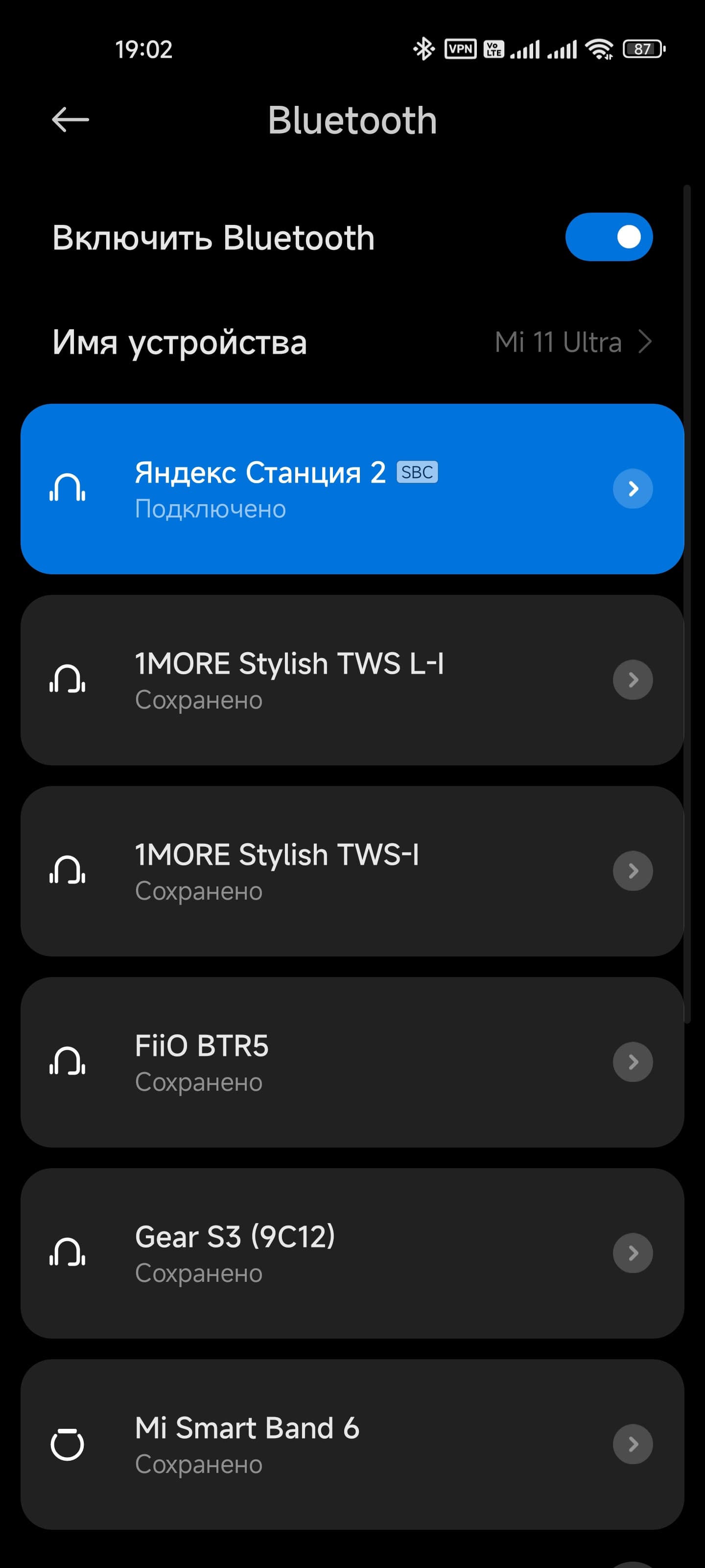 Осталось настроить ее, но это чуть позже. Сначала протестируем еще один вариант подключения. Говорим: «Алиса, включи Bluetooth» и пробуем соединиться со смартфоном. Все получается без проблем. Приятно, что колонка при этом полностью сохраняет работоспособность: Алиса отвечает на вопросы, управление «умным» домом остается доступным и так далее. Кодек только один — базовый SBC, тут без перемен. Возможно, хотелось бы чего-то более «продвинутого», но в целом и его достаточно — все же речь идет о сравнительно компактной акустике.