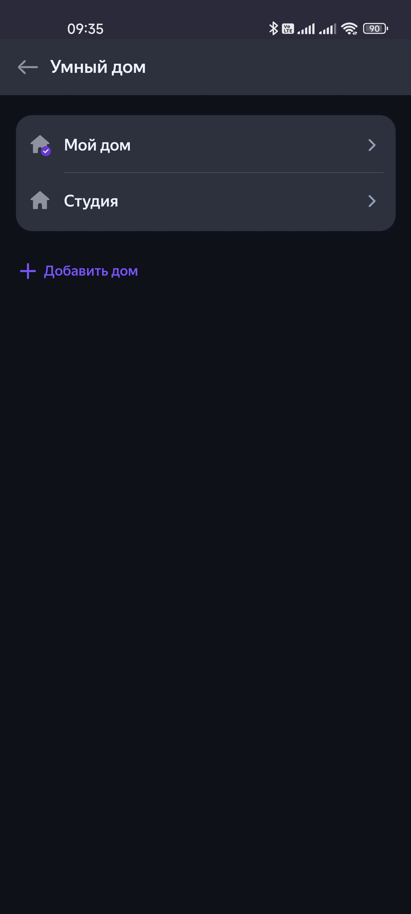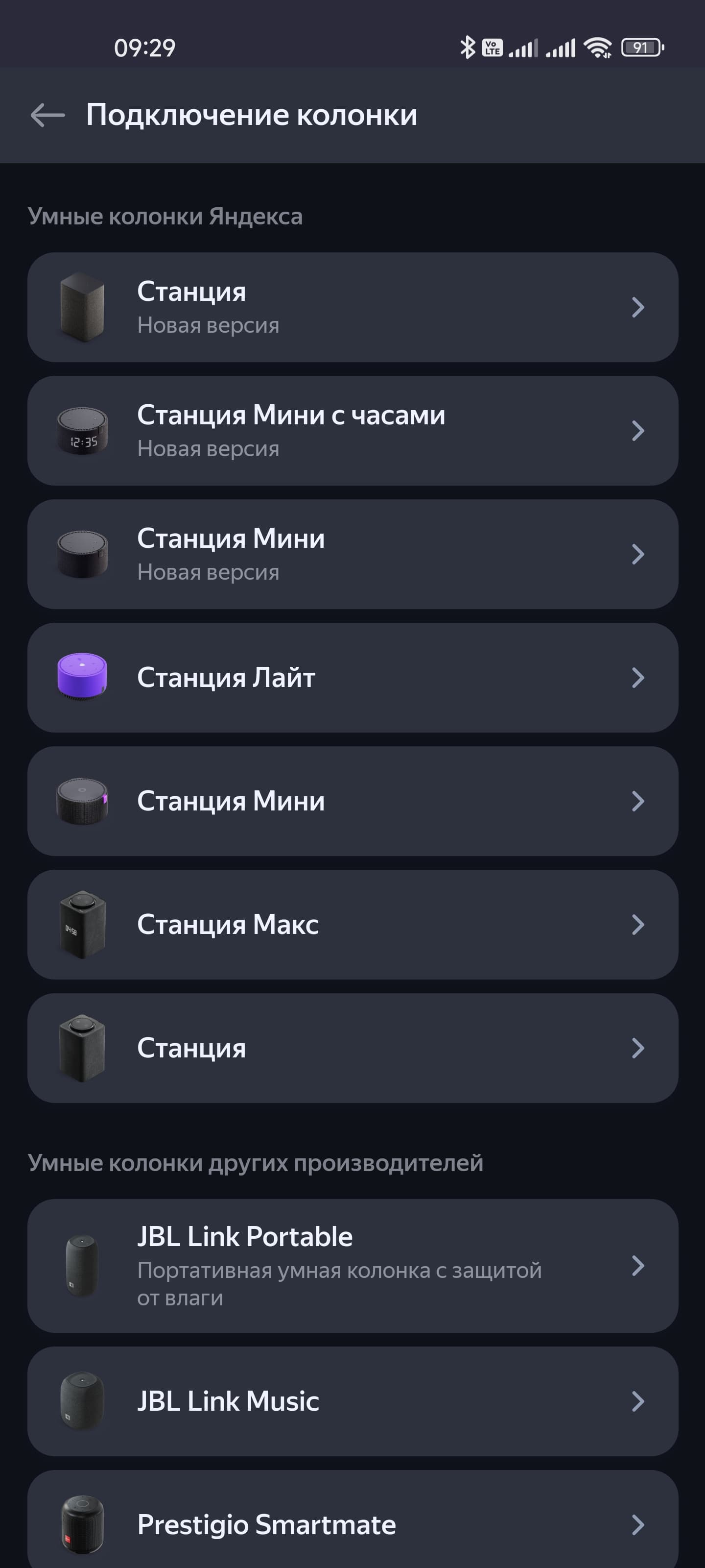 Ну а дальше нажимаем на кнопку добавления устройства, потом — кнопку добавления колонки. Видим обширный список, новинка — на самом верху. Выбираем и продолжаем. Система поддерживает несколько домов по несколько комнат в каждом: можно пользоваться одним аккаунтом в городской квартире и на даче, например.