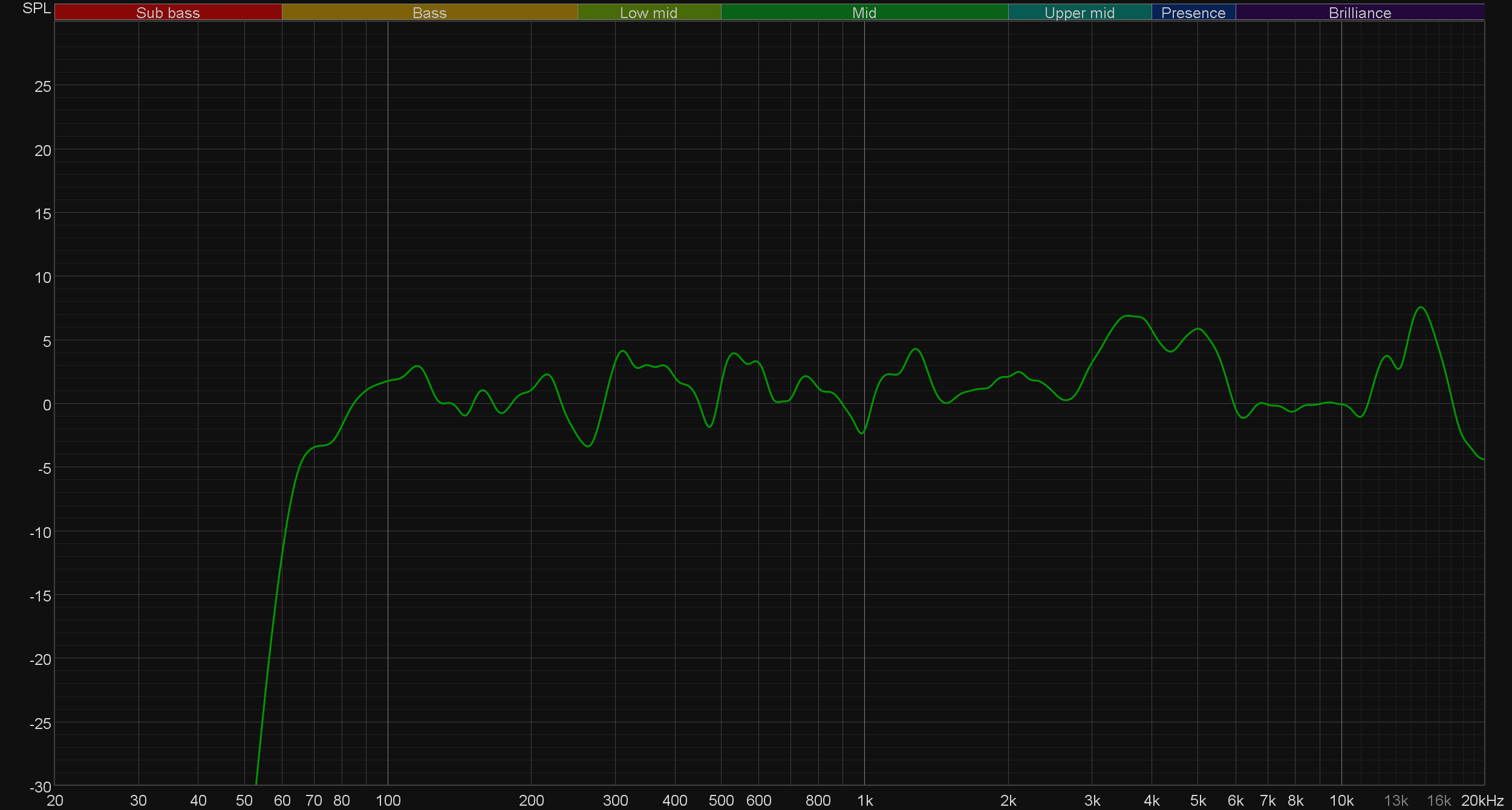 Корпус немного вибрирует, ну и работа пассивных излучателей заметна, но в целом все очень и очень даже неплохо. К сожалению, эквалайзер не работает при подключении посредством Bluetooth, а другого способа транслировать тестовый сигнал на колонку нет — потому посмотреть на эффективность его работы мы не сможем. Ограничимся субъективными впечатлениями: эквалайзер работает, подстроить звук под свои вкусы позволяет. Что же касается корректировки звучания под помещения, то чуда предсказуемо не происходит, но все же звучание чуть меняется и чаще всего — в лучшую сторону.