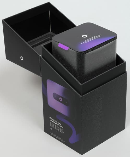 Крышка откидывается, под ней обнаруживается плотно удерживаемая ложементами колонка в защитных пленках — за сохранность устройства при транспортировке можно не переживать, коробка не только красивая, но и свою основную функцию выполняет отлично.