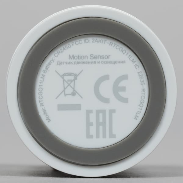 Датчик движения и освещенности также идет в комплекте со стойкой для его установки и круглым кусочком двустороннего скотча, призванным помочь в этом деле. Ну и плюс документация.