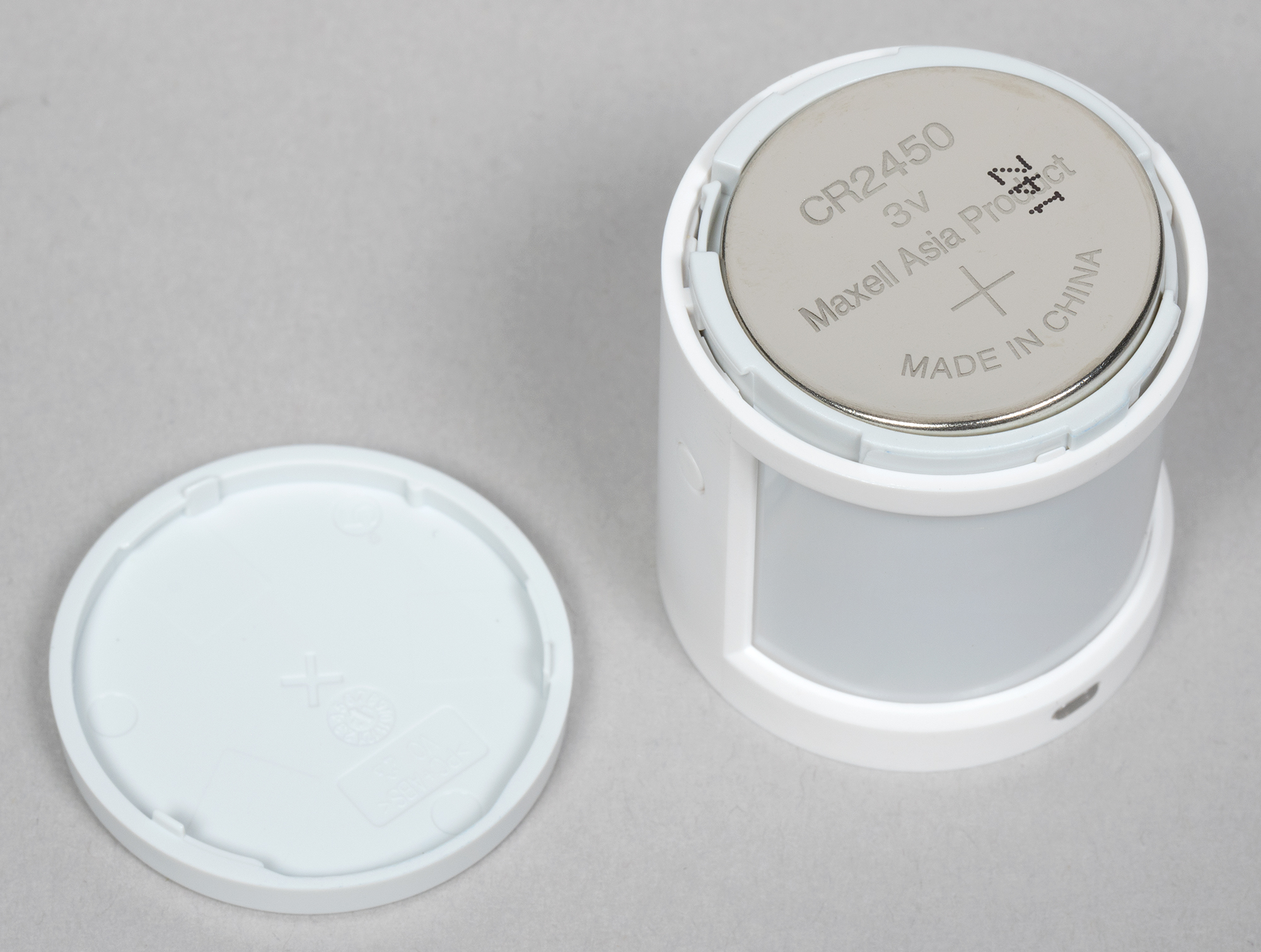 Крышка снимается поворотом против часовой стрелки, для питания используется элемент CR2032.
